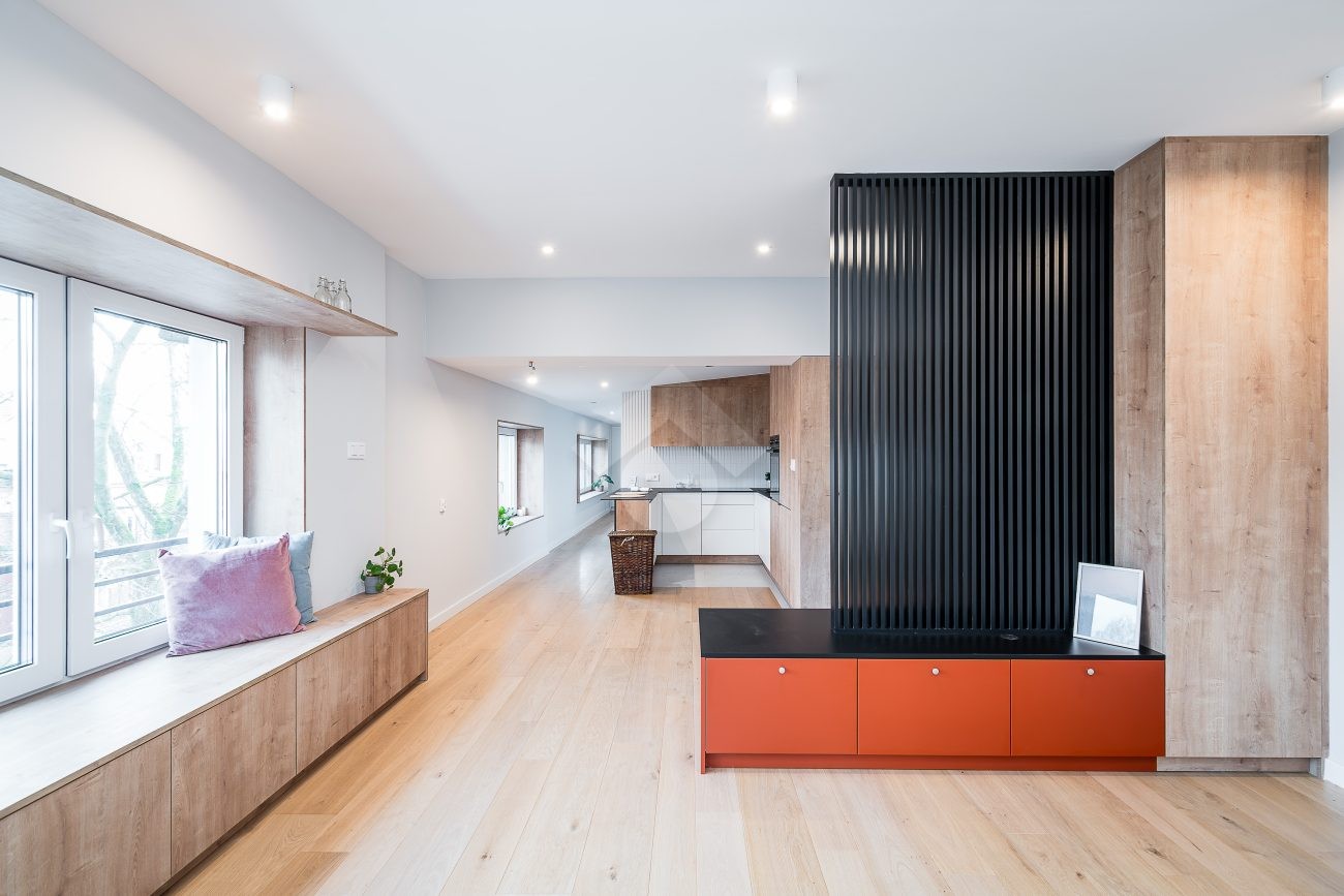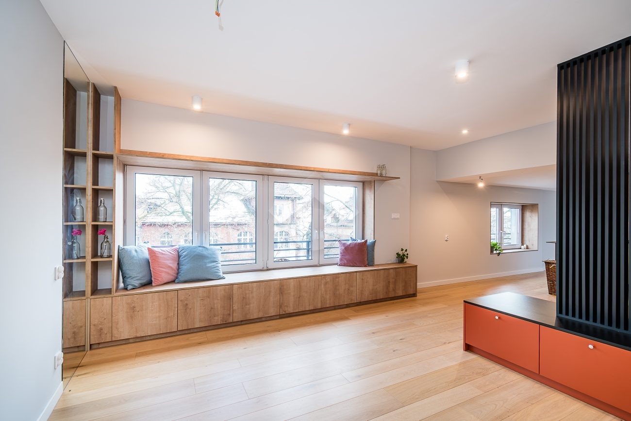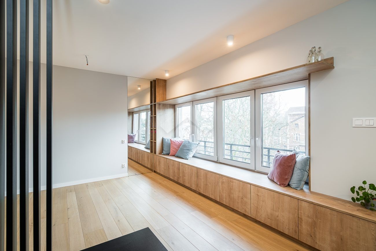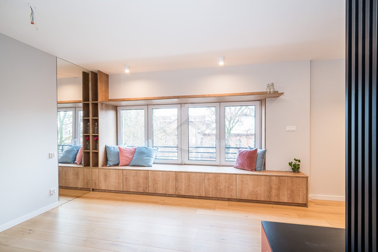 Condition of the premises: Very good, renovated this year. The fitted kitchen was custom-made by a carpenter and is equipped with an induction hob, oven, refrigerator and dishwasher. The floors in the rooms are wooden, while the bathroom, laundry room and hall are tiled. The hall has a large wardrobe with a mirror and access to the laundry room, the bedroom has a large bed, and the living room has space for your own arrangement. The bedroom, kitchen and living room have panoramic windows overlooking beautiful historic tenement houses. The bathroom has a walk-in shower. The apartment is also very bright thanks to the large number of windows. The premises are heated by a dual-function gas heater.