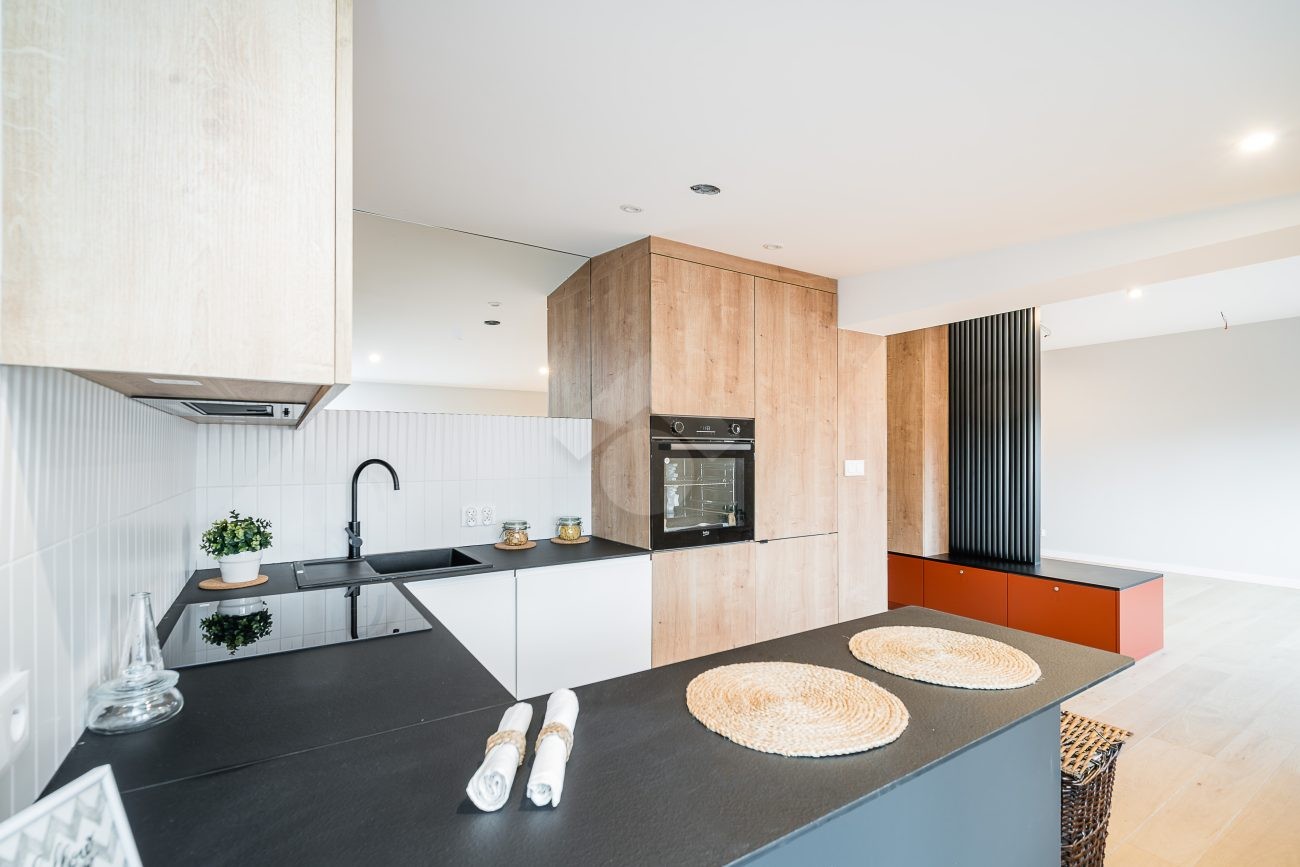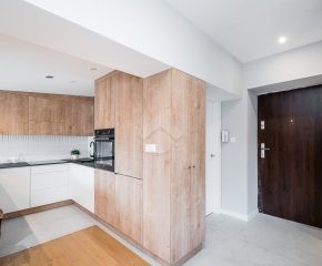 Mieszkanie znajduje się w bardzo dobrym stanie – zostało świeżo wyremontowane w tym roku. Kuchnia wykonana na wymiar przez stolarza wyposażona jest w płytę indukcyjną, piekarnik, lodówkę oraz zmywarkę. W pokojach położono deskę, natomiast w łazience, pralni i hallu – płytki.