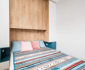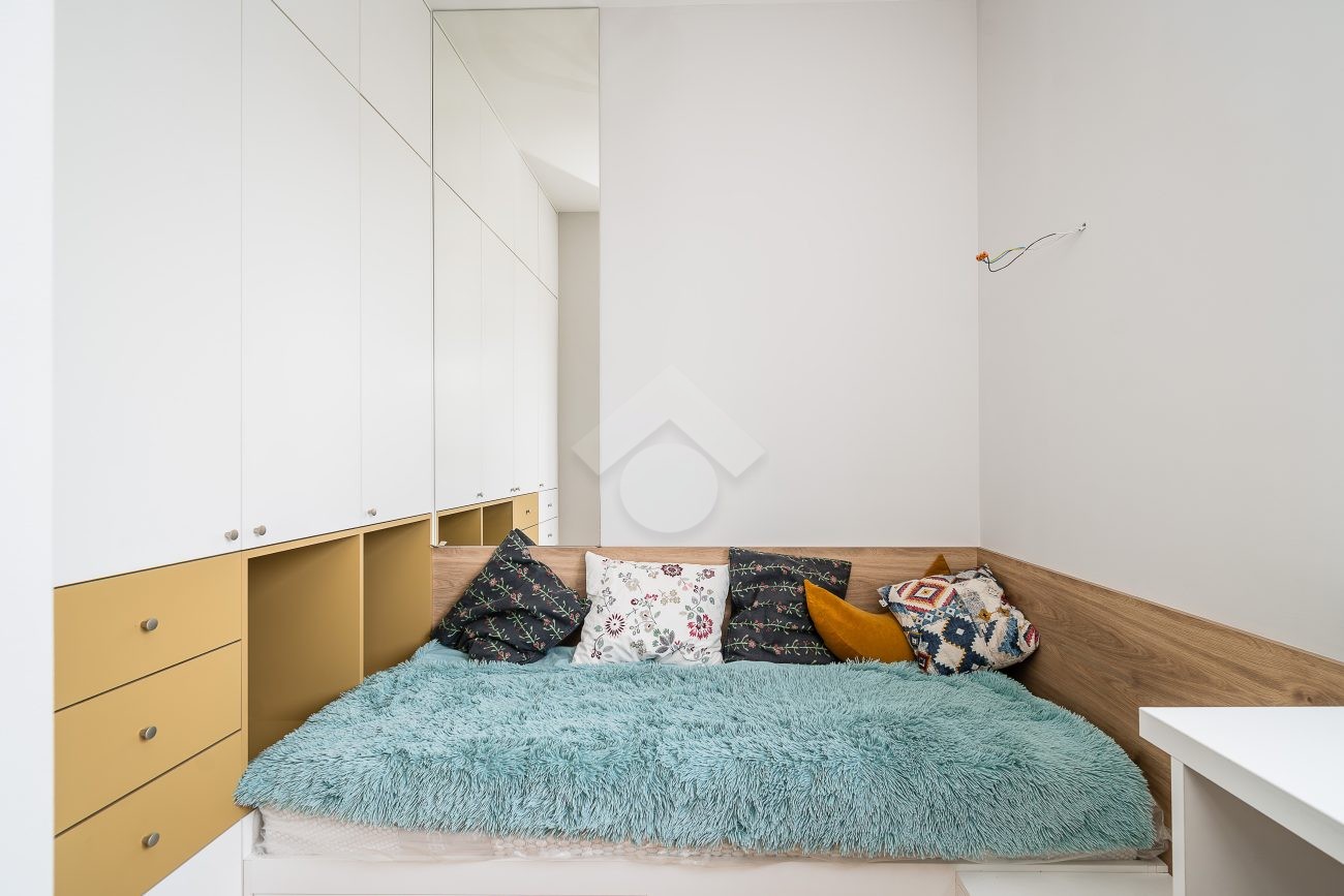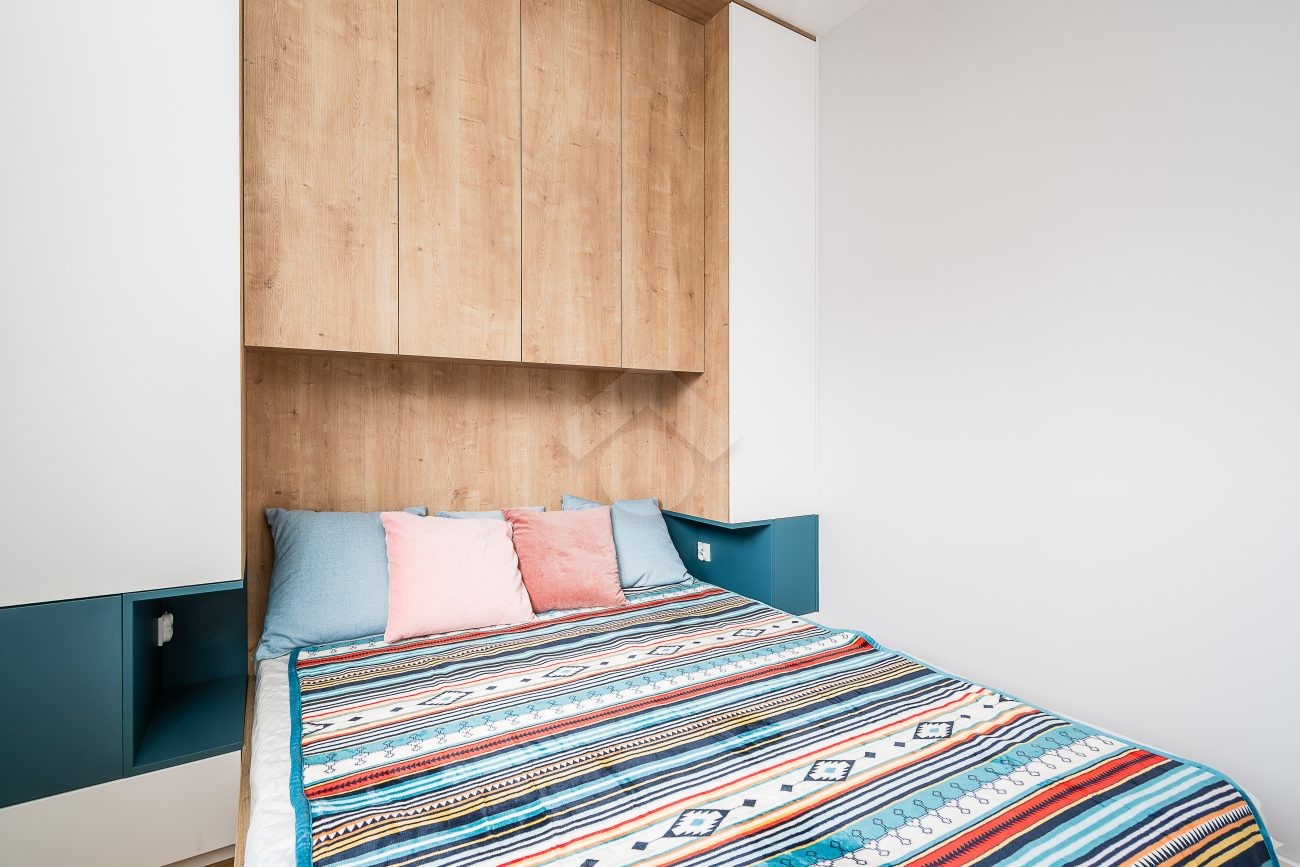 W hallu znajduje się duże lustro, pojemna szafa oraz pralka. W mniejszym pokoju umieszczono łóżko oraz biurko, natomiast w większym wygodne łóżko dwuosobowe oraz szafę. Łazienka wyposażona jest w prysznic typu walk-in.