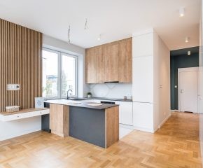 Mieszkanie jest w bardzo dobrym stanie. Generalny remont wykonano w tym roku. Kuchnia w zabudowie została wykonana na wymiar przez stolarza i wyposażona w płytę indukcyjną, piekarnik, lodówkę oraz zmywarkę. W pokojach położono parkiet, natomiast w hallu i łazience płytki.