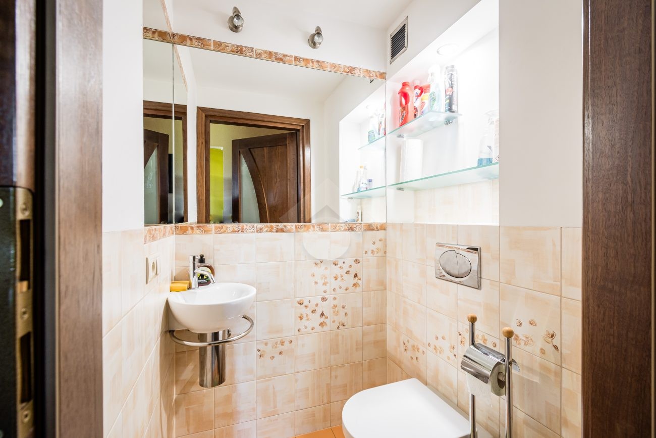 Stan nieruchomości: Nieruchomość w bardzo dobrym stanie wizualnym i technicznym. Kuchnia wykończona na wymiar z licznymi szafkami i szufladami maksymalizujące funkcjonalność, w zabudowie meblowej sprzęty AGD, piekarnik, zmywarka, płyta indukcyjna, mikrofalówka oraz lodówką z zamrażarką. Na podłodzę całego domu wykorzystano gres z ogrzewaniem podłogowym natomiast w każdej z sypialni na podłodze znajdziemy panele. Dom wyposażony w system centralnego odkurzania co pozwala na bardziej efektywne i wygodne sprzątanie. Nieruchomość sprzedawana z pełnym wyposażeniem, jak i umeblowaniem.