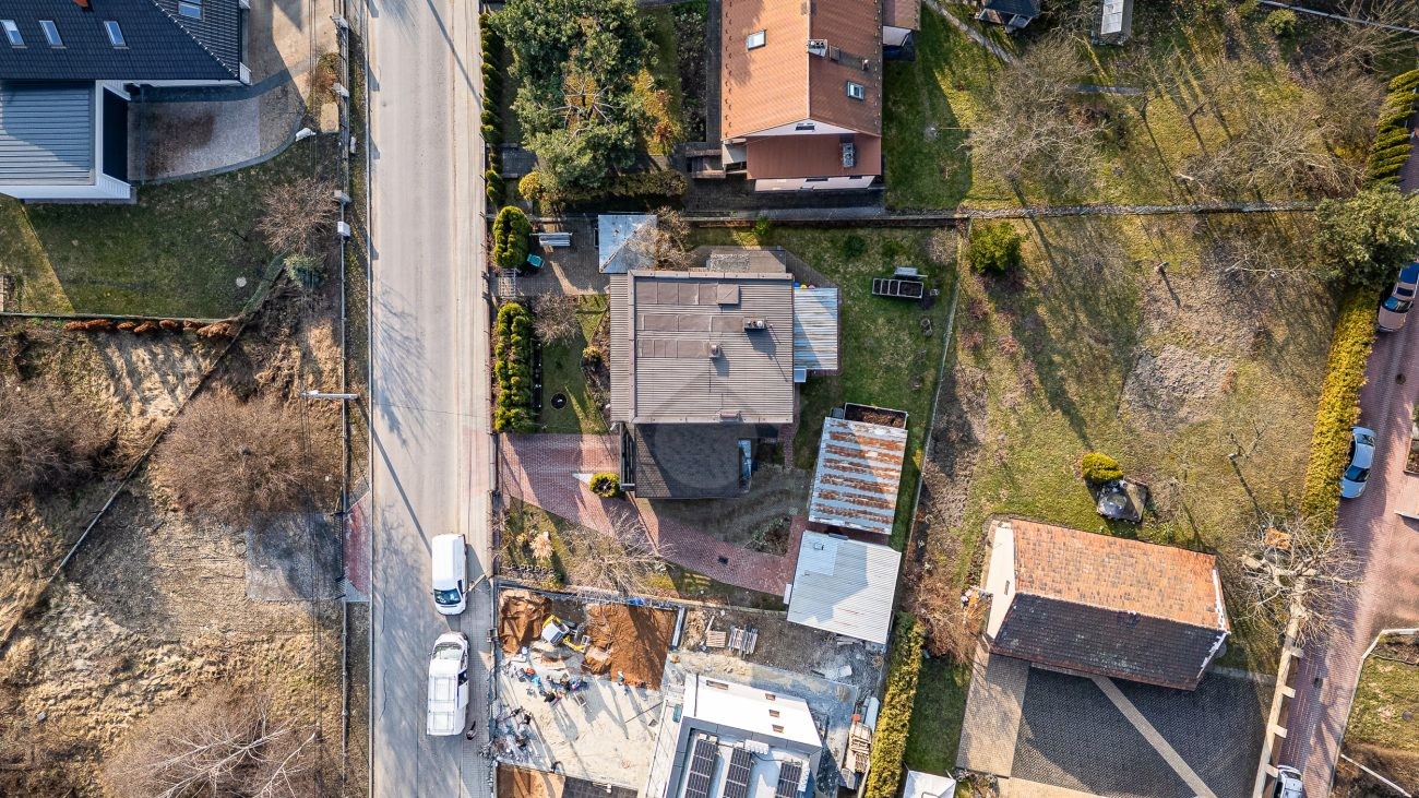 Do budynku przylega garaż z kanałem, a na jego dachu znajduje się zadaszony taras. Na działce są dodatkowo dwa garaże blaszane oraz ocieplony budynek gospodarczy ok. 20 m² z antresolą (ok. 9 m²) – z wodą, kanalizacją i prądem – idealny na biuro, magazyn lub pracownię. Dodatkowo drugi budynek gospodarczy ok. 15 m². Działka ogrodzona, z bramą przesuwną, podjazdy z kostki brukowej i płyt ażurowych, zbiornik na deszczówkę 2 m³.