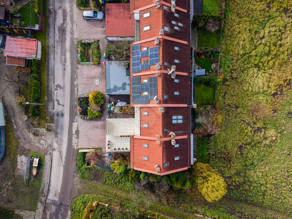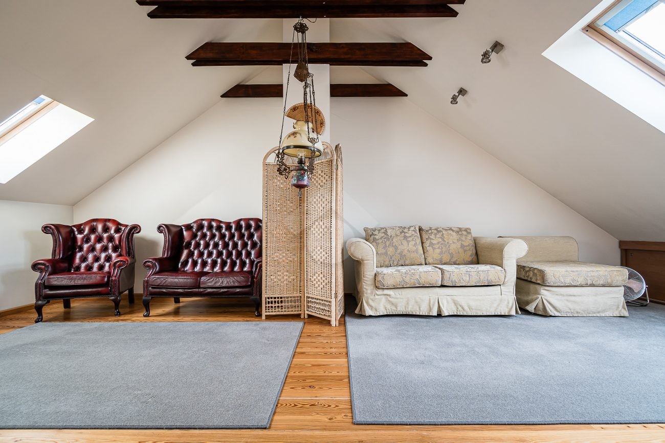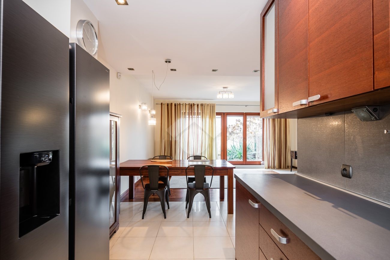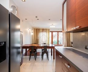 Stan budynku: Bardzo dobry. Budynek oddany do użytkowania w 2006 r. Do budowy nieruchomości użyto materiałów najwyższej klasy. Okna drewniane, drzwi wewnętrzne w domu i wejściowe – w okleinie naturalnej drewnianej egzotycznej, meble kuchenne w naturalnej okleinie drewnianej merbau, lodówka side by side. Dla najemców dostępny indywidualny ogródek.