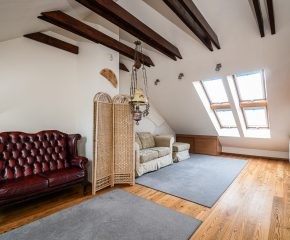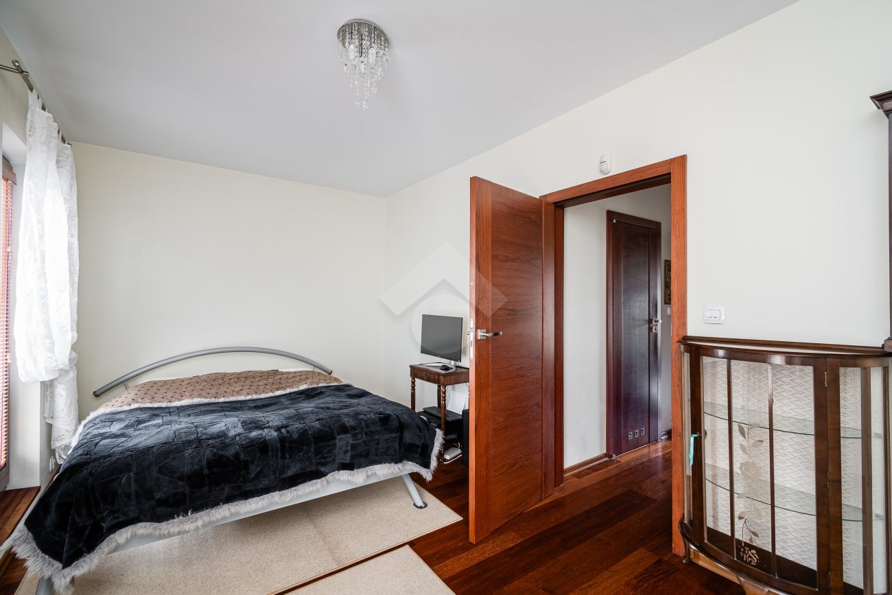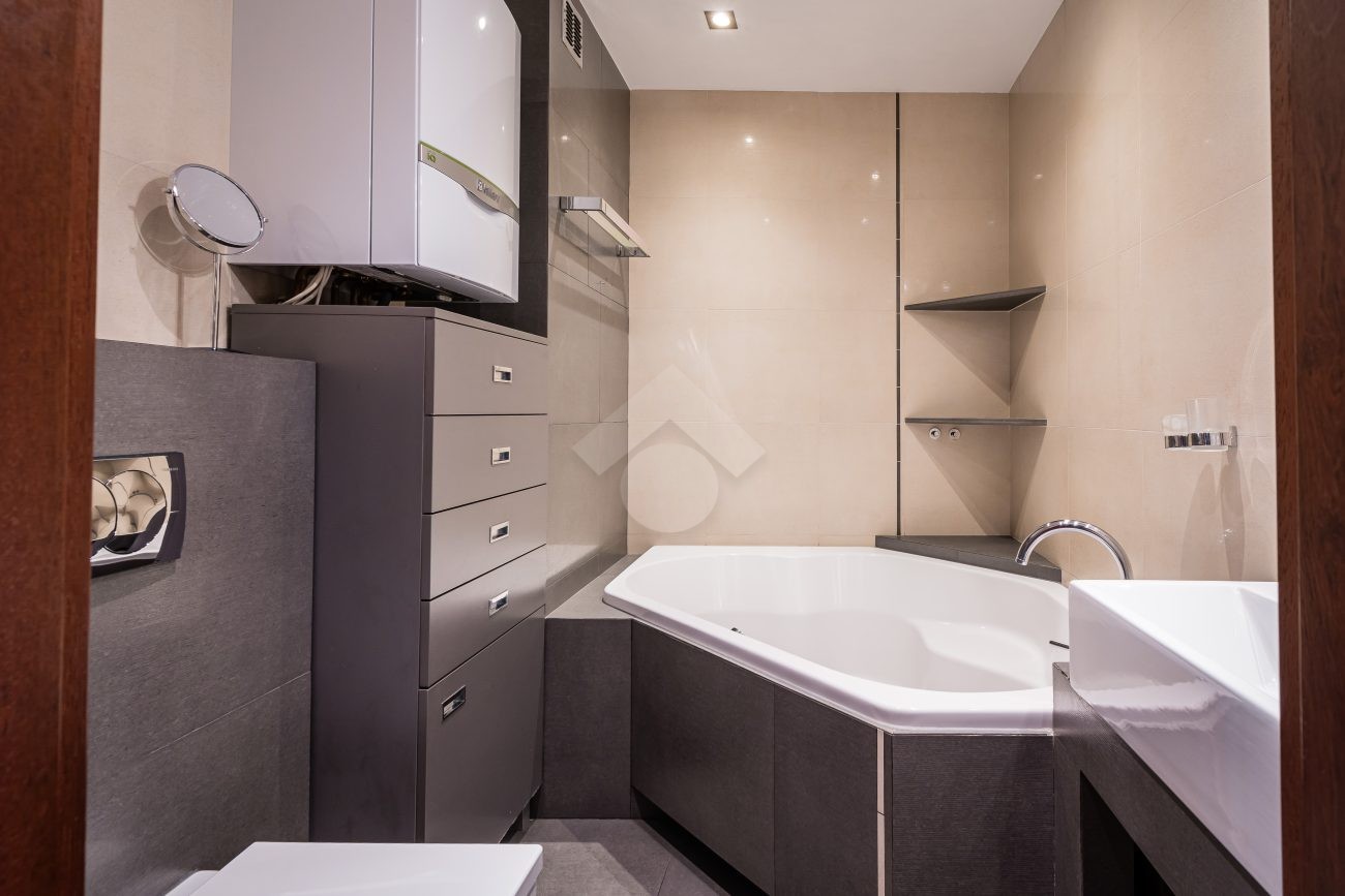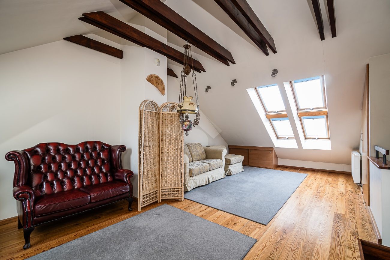 Stan lokalu: Bardzo dobry. Nieruchomość wykończona w wysokim standardzie. Na podłodze w pokojach deska Merbau a w kuchni, łazience oraz hallu płytki gresowe. Na ścianach gładzie. Kuchnia w zabudowie wyposażona w płyta gazowa, piekarnik elektryczny, dużą lodówkę z zamrażarką, zmywarkę oraz okap. W łazience na parterze znajduję się prysznic oraz bidet. W łazience na pierwszym piętrze jest wanna a na ostatnim piętrze WC oraz pralka. W mieszkaniu zainstalowany system alarmowy Solid. Ogrzewanie piecem gazowym 2-funkcyjnym firmy Vaillant.