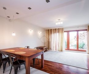 Nieruchomość: Proponujemy Państwu do wynajęcia dom w zabudowie szeregowej o powierzchni całkowitej ok. 130 m2. Na parterze znajduję się przestronny salon z jadalnią oraz wnęką kuchenną, łazienka z WC, hall oraz garaż. Z salonu wyjście na ogródek. Na drugim poziomie zlokalizowane są dwa samodzielne pokoje – jeden z balkonem a drugi z dużym tarasem, łazienka z WC. Na trzecim poziomie znajduję się przestrzeń, która może pełnić funkcję trzeciej sypialni lub miejsca do pracy. Na ostatnim poziomie mieści się również garderoba oraz pralnia z WC.