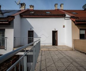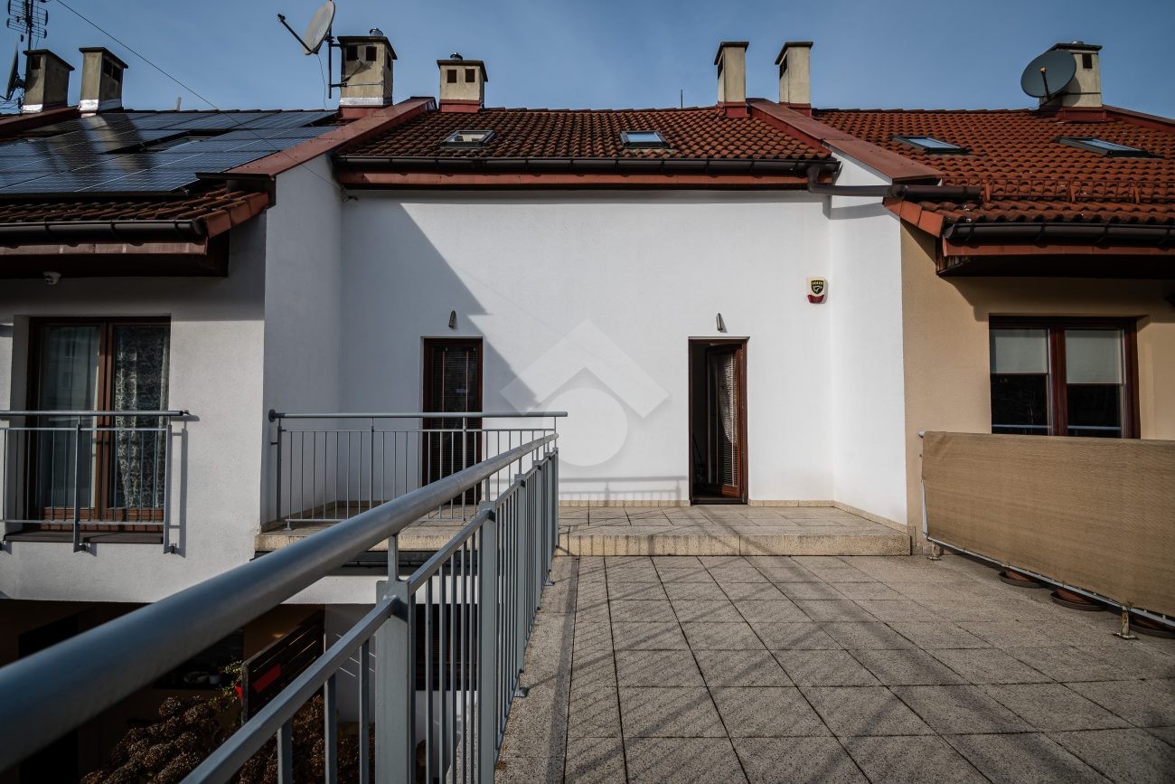 Property: We are pleased to offer a terraced house for rent with a total area of approx. 130 m². The ground floor features a spacious living room with a dining area and kitchenette, a bathroom with a toilet, a hall, and a garage. The living room provides access to a garden. On the second level, there are two separate rooms – one with a balcony and the other with a large terrace—and a bathroom with a toilet. The third level offers a space that can serve as a third bedroom or a home office. This level also includes a walk-in closet and a laundry room with a toilet.