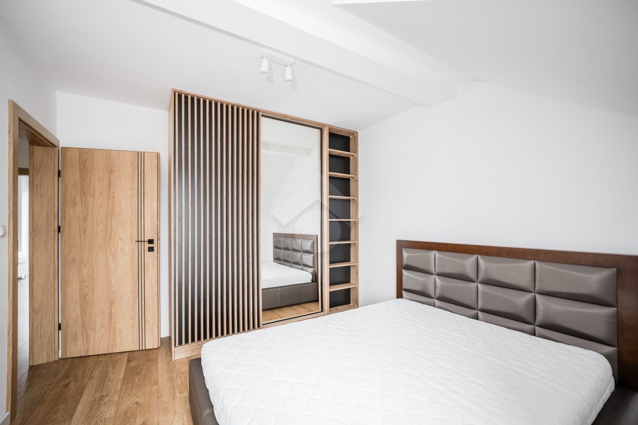 – sypialnia 1 o pow. użytkowej 11,11m², która została wyposażona w łóżko dwuosobowe oraz pojemną szafę