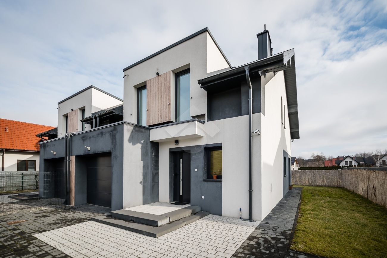 Bibice – ul. Leśna – Dwukondygnacyjny dom w zabudowie bliźniaczej z tarasem i garażem