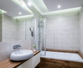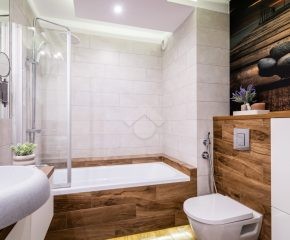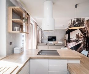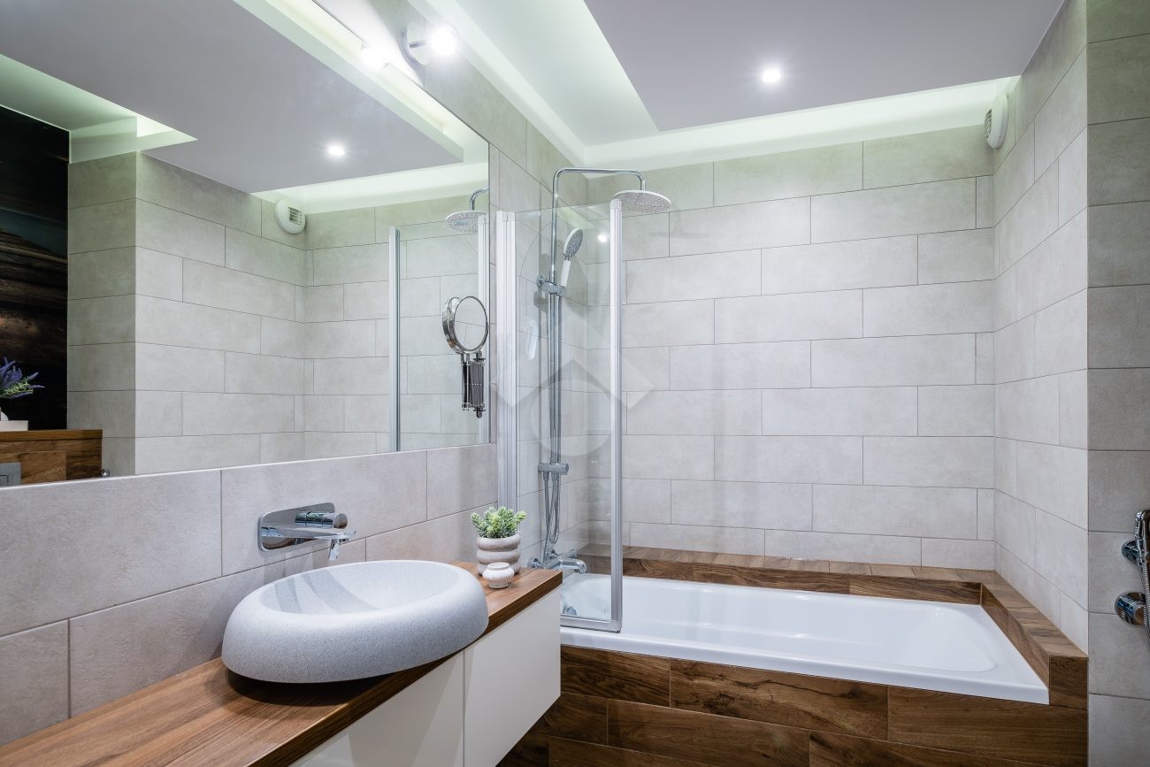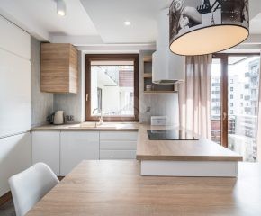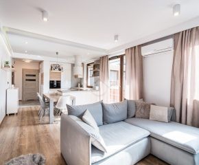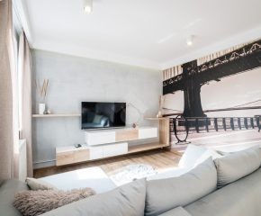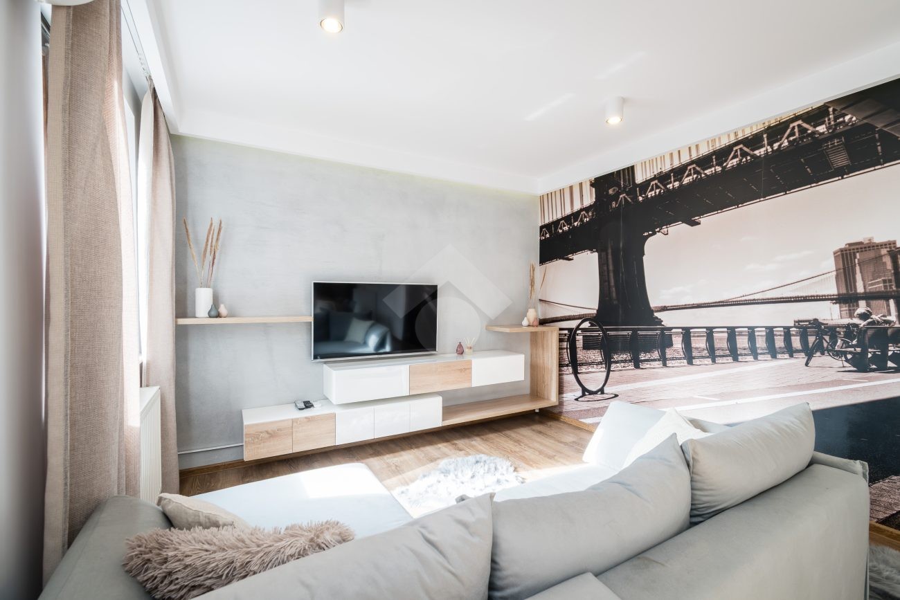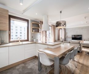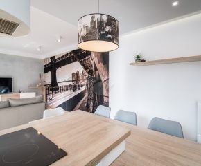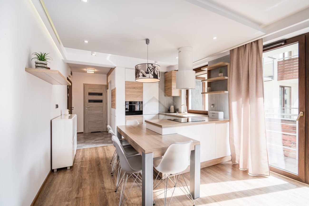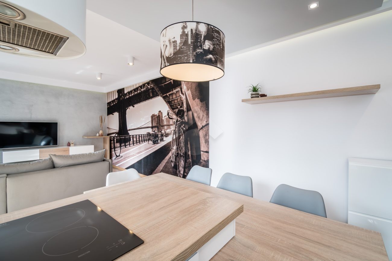 Wysoki standard – w kuchni zabudowa kuchenna na wymiar wyposażona w podstawowe sprzęty AGD (lodówka, zmywarka, płyta indukcyjna, piekarnik). W łazience znajduje się wanna, umywalka, pralka oraz WC.