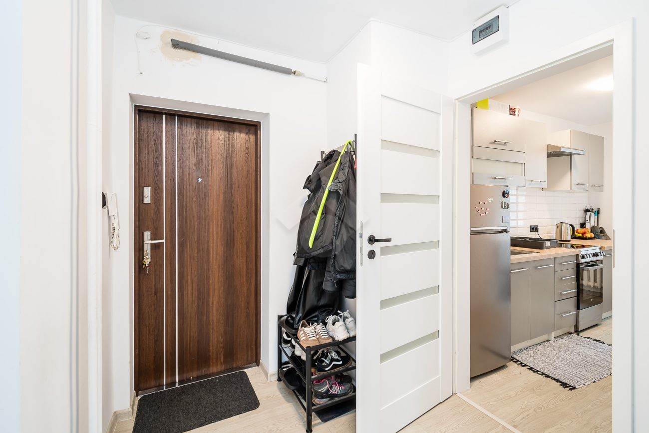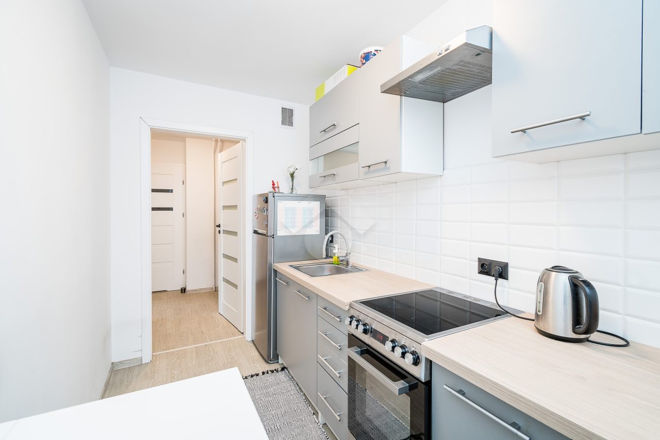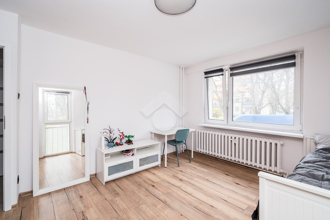 Property: We offer a 39 m² apartment located on the ground floor of a ten-storey building. The flat consists of two rooms, a separate bright kitchen, a bathroom with a toilet, and a hallway. The apartment is currently rented out. It is possible to take over the rental agreement or terminate it.