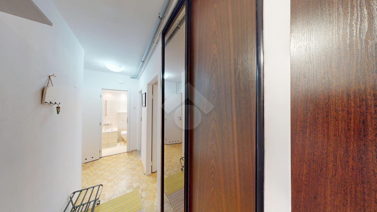 W łazience znajduje się wanna, pralka oraz umywalka. Dodatkowo w korytarzu znajduje się pojemna, zabudowana szafa.