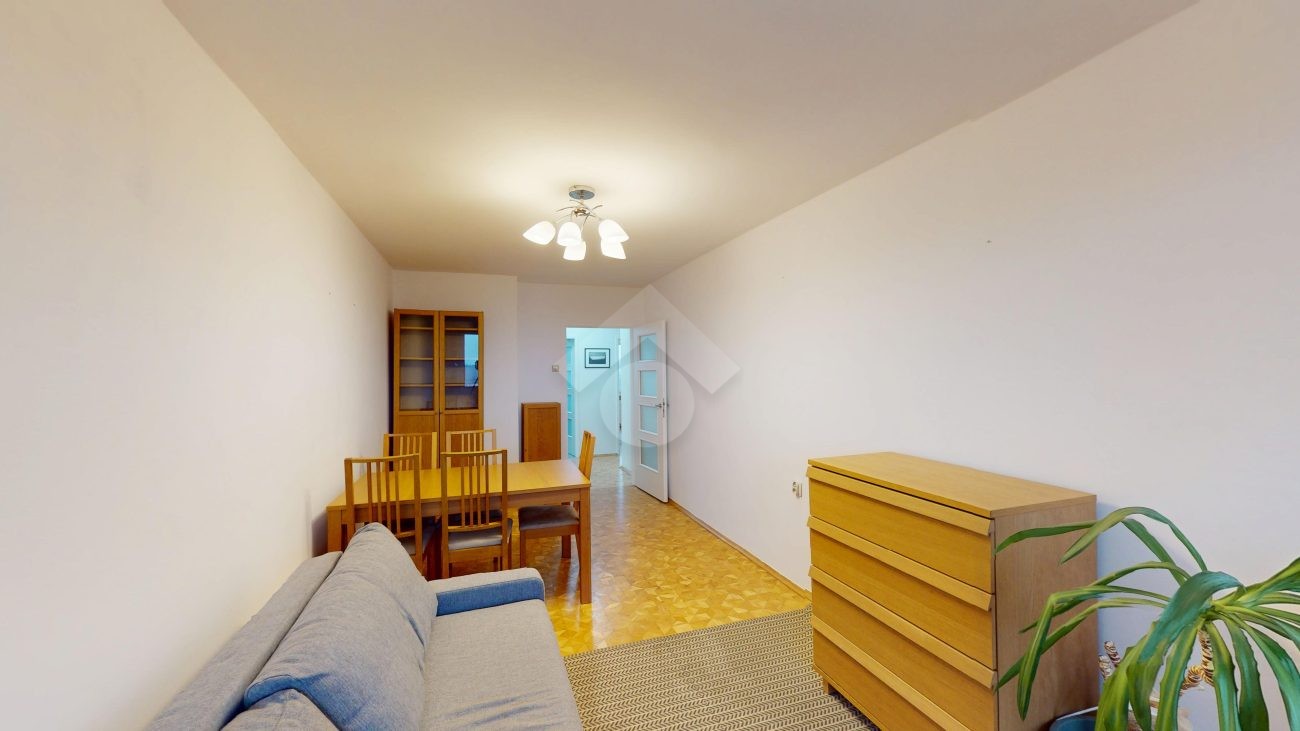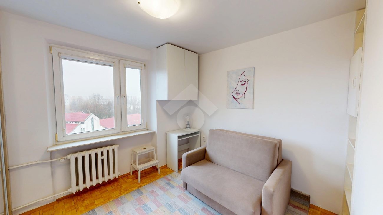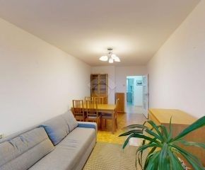 Mieszkanie jest w pełni umeblowane i wyposażone, gotowe do zamieszkania. W większym pokoju znajduje się rozkładana kanapa, stół z krzesłami oraz komoda, a dodatkowym atutem jest wyjście na balkon. Drugi pokój wyposażony jest w rozkładaną kanapę oraz duże, pojemne szafy.