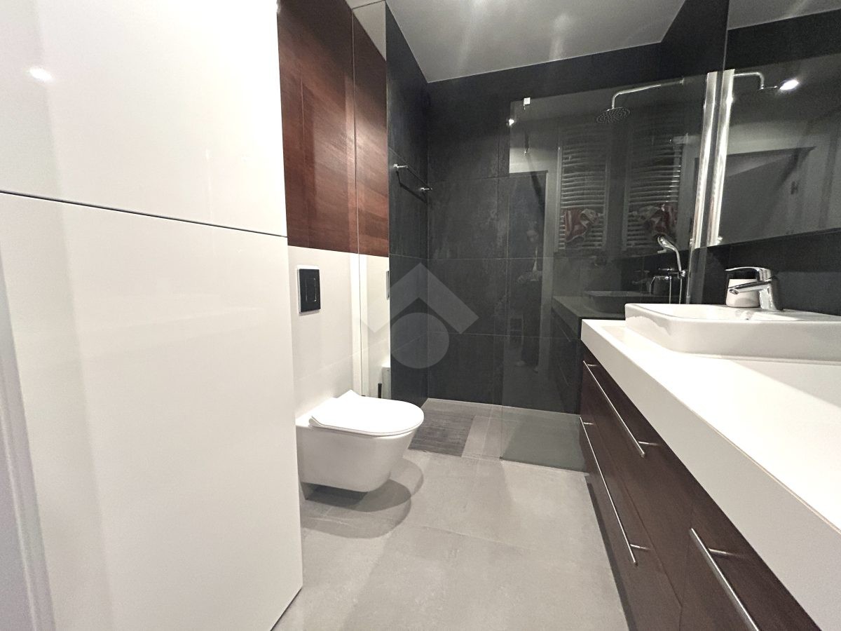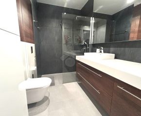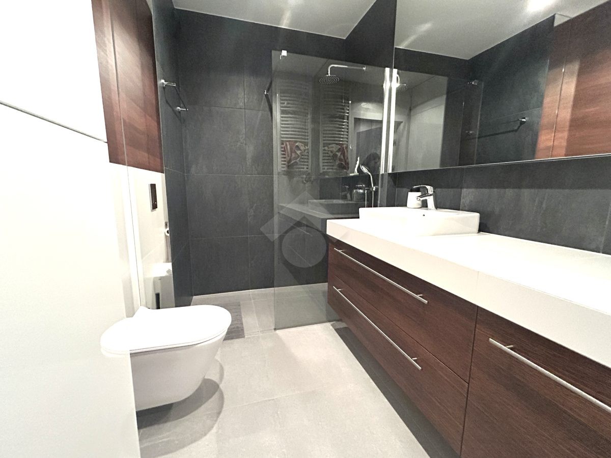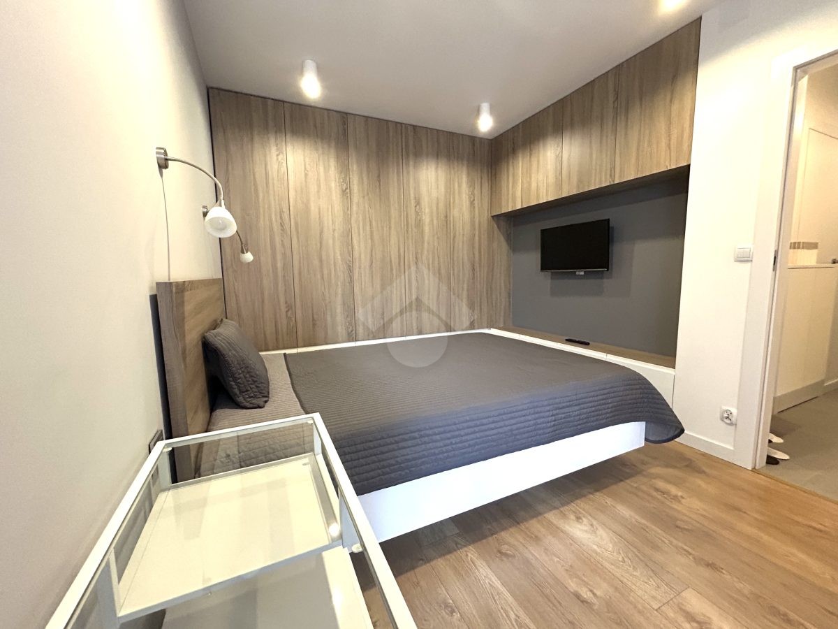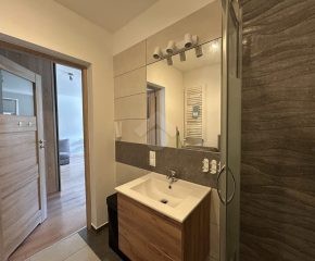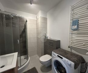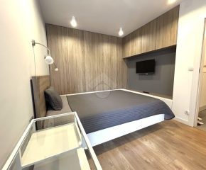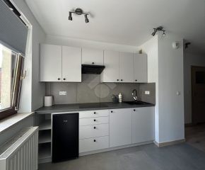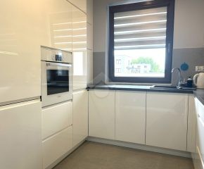 Bardzo dobry – mieszkanie jest w pełni urządzone. W kuchni znajduje się zabudowa kuchenna oraz urządzenia potrzebne do codziennego użytku (płyta indukcyjna, piekarnik, zmywarka oraz lodówka). W łazience znajduje się prysznic, umywalka, pralka oraz WC.