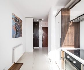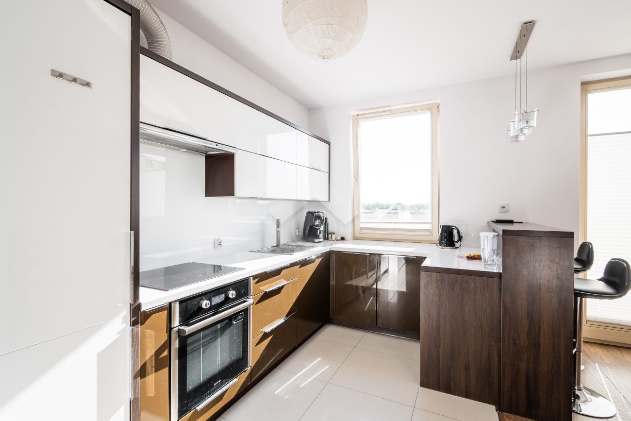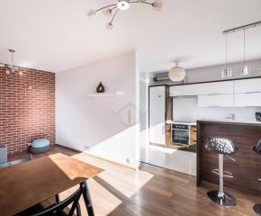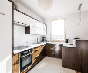Bardzo dobry – Kuchnia wyposażona w podstawowe sprzęty AGD (lodówka, piekarnik, płyta indukcyjna, zmywarka). W łazience znajduje się prysznic, umywalka, pralka oraz WC. Mieszkanie jest czyste oraz zadbane.