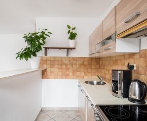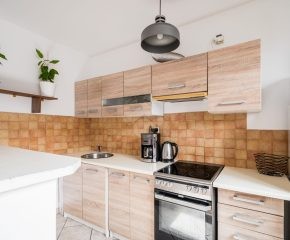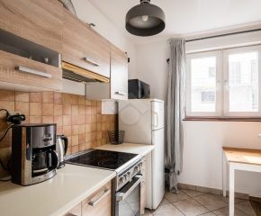 Stan nieruchomości: DOBRY. Nieruchomość sprzedawana z częściowym wyposażeniem. Kuchnia została wyposażona w lodówko – zamrażarkę, płytę elektryczną oraz piekarnik. W łazience znajduje się wanna, umywalka oraz pralka. W sypialni łóżko oraz komoda. Ogrzewanie elektryczne, natomiast ciepła woda podgrzewana jest bojlerem elektrycznym.