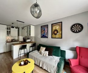 Stan nieruchomości: BARDZO DOBRY Mieszkanie wykonane z dbałością o szczegóły. Ogrzewanie i ciepła woda realizowane z sieci miejskiej. Nieruchomość w pełni wyposażona i dostosowana do codziennego użytku. W kuchni i salonie: lodówko-zamrażarka, piekarnik, płyta indukcyjna, zmywarka oraz sofa; w łazience kabina prysznicowa oraz pralka. Sypialnia wyposażona jest w łóżko dwuosobowe, biurko oraz szafę.