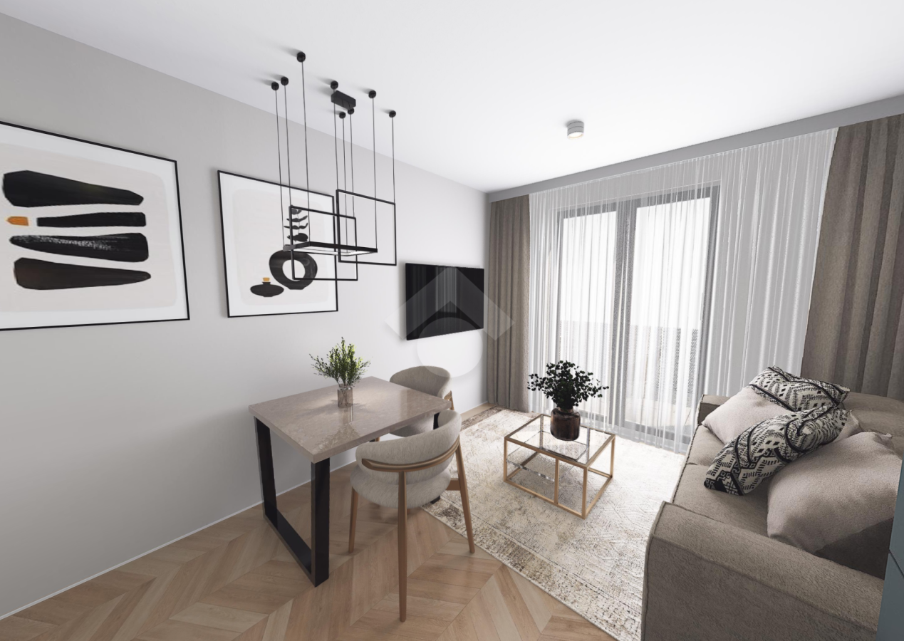 Nieruchomość: Proponujemy Państwu do kupna dwupokojowe mieszkanie o powierzchni 33,34m², znajdujące się na pierwszym piętrze w trzypiętrowym budynku, którego zakończenie prac budowlanych nastąpi do sierpnia 2026r. Budynek posiada windę. Mieszkanie składa się z osobnej sypialni o pow. 9,13m², salonu z aneksem kuchennym o pow. 13,82m², łazienki z WC o pow. 3,57m² oraz przedpokoju o pow. 6,82m². Dodatkowo do nieruchomości przynależy balkon o pow. 8,40m², na który można wyjść zarówno z sypialni jak i salonu. Największą zaletą mieszkania jest funkcjonalny układ oraz możliwość aranżacji wedle własnych potrzeb. Do mieszkania przynależy miejsce postojowe w garażu podziemnym oraz komórka lokatorska o pow. 1,81m² (za dodatkową opłatą).
