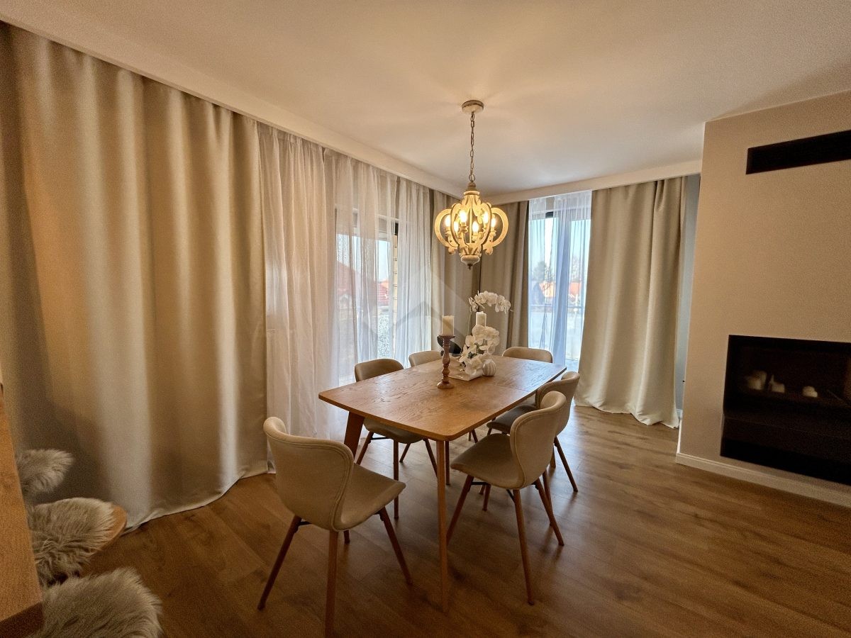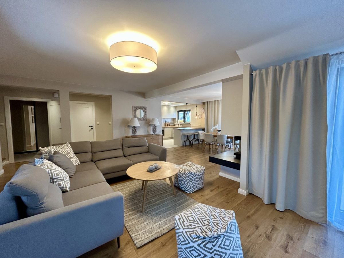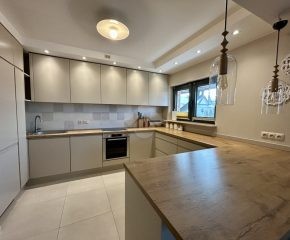 Kuchnia funkcjonalna, z dużą ilością miejsca do przechowywania i przygotowywania posiłków. Jasne wnętrza oraz duże okna zapewniają doskonałe doświetlenie pomieszczeń i komfortową atmosferę.