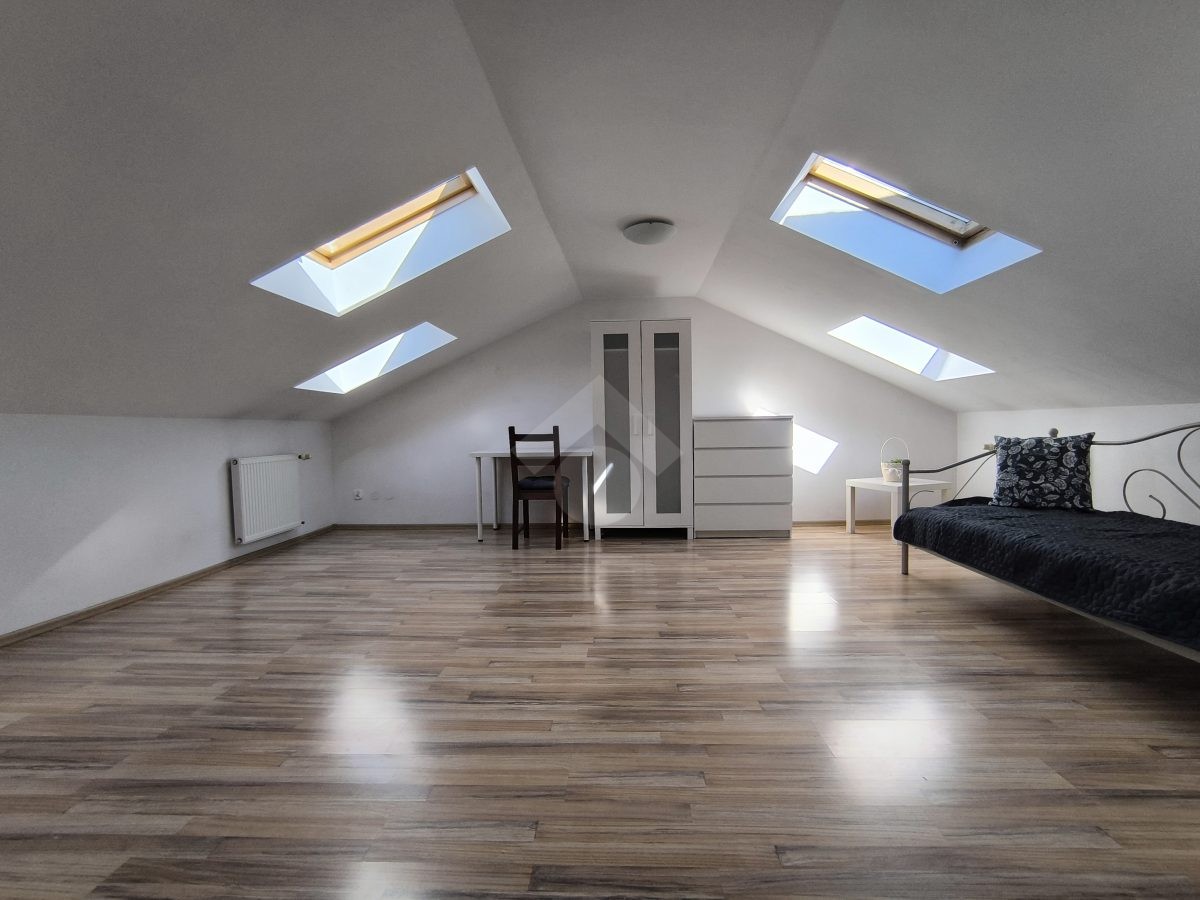 Nieruchomość: Proponujemy Państwu do wynajęcia dwupoziomowe mieszkanie o powierzchni około 50 m², znajdujące się na ostatnim piętrze w trzypiętrowym budynku z 2004 r. Na pierwszym poziomie składa się z salonu, oddzielnej kuchni, przedpokoju oraz łazienki z WC, natomiast na drugim poziomie jest sypialnia oraz WC. Do mieszkania przynależy obszerny balkon na który można wyjść bezpośrednio z salonu. Dla mieszkańców budynku ogólnodostępny parking.