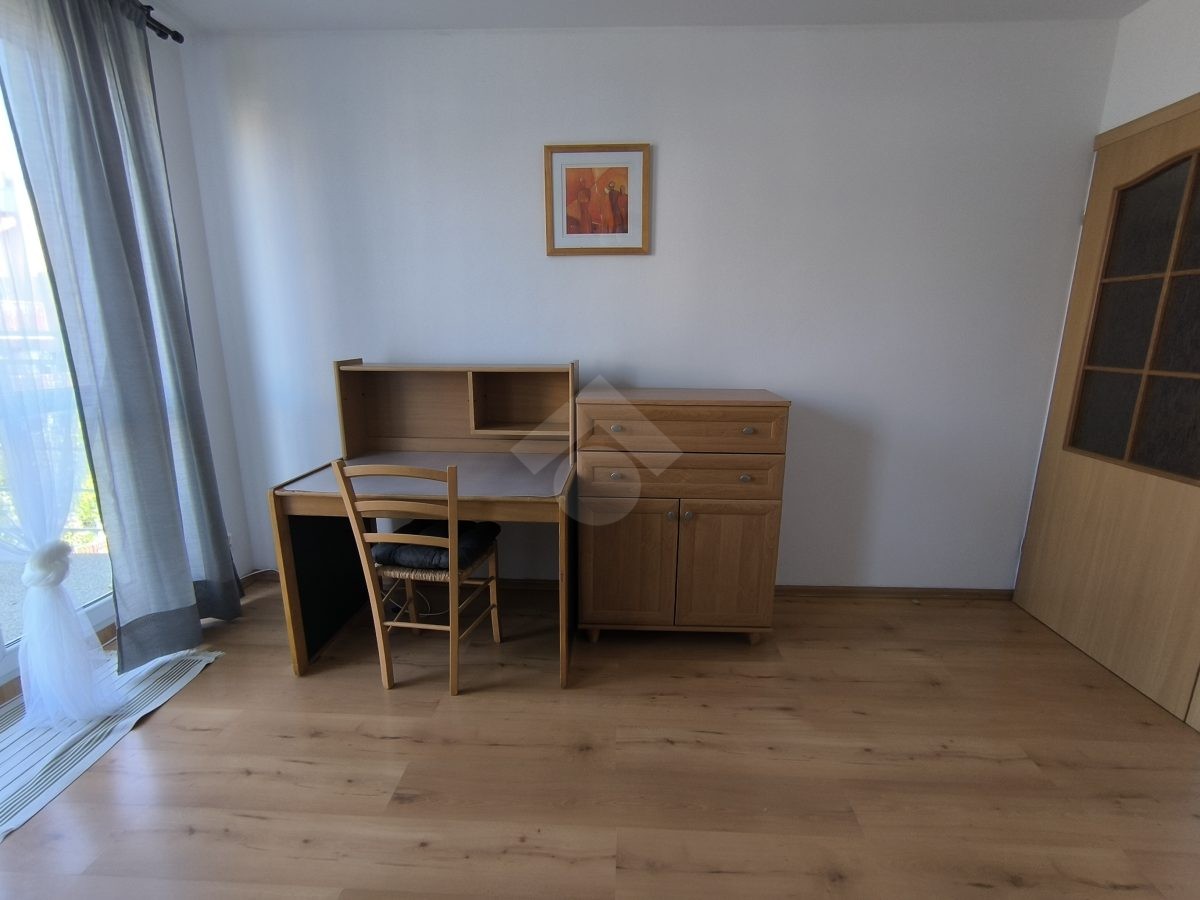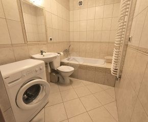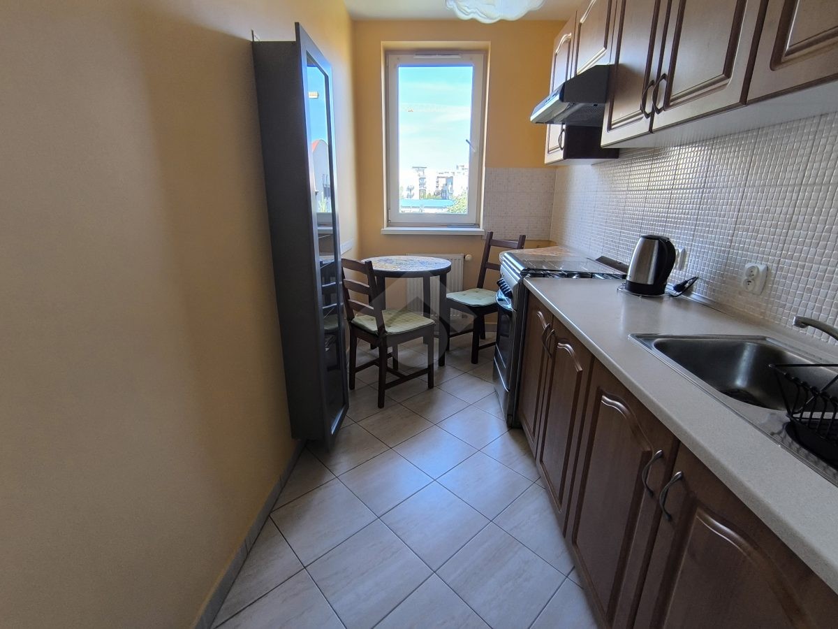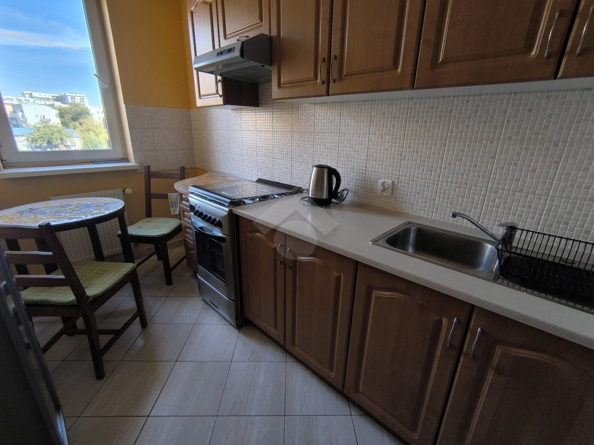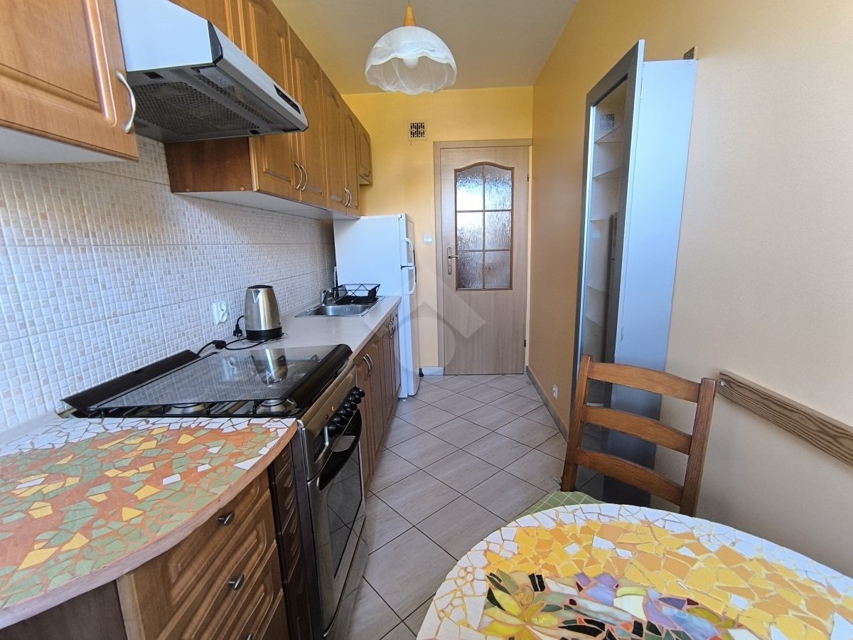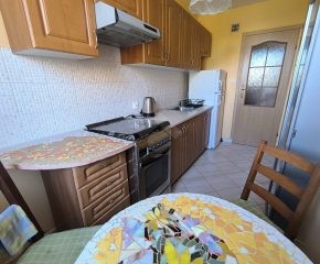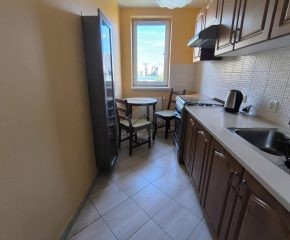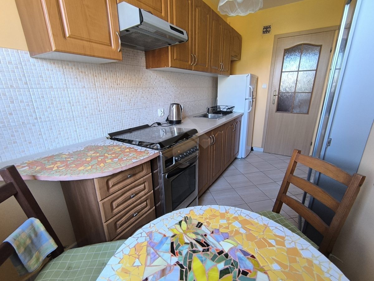 Stan nieruchomości: BARDZO DOBRY – Ogrzewanie oraz ciepła woda realizowane z osiedlowej kotłowni. Nieruchomość dobrze doświetlona ze względu na dużą liczbę okien. Kuchnia wyposażona w lodówko – zamrażarkę, kuchenkę gazową, okap oraz piekarnik. W łazience duża wanna, sedes umywalka oraz pralka. Salon wyposażony w sofę z funkcją spania, komodę, szafę i biurko, a sypialnia w łóżko, stolik z krzesłem, szafę oraz komodę.