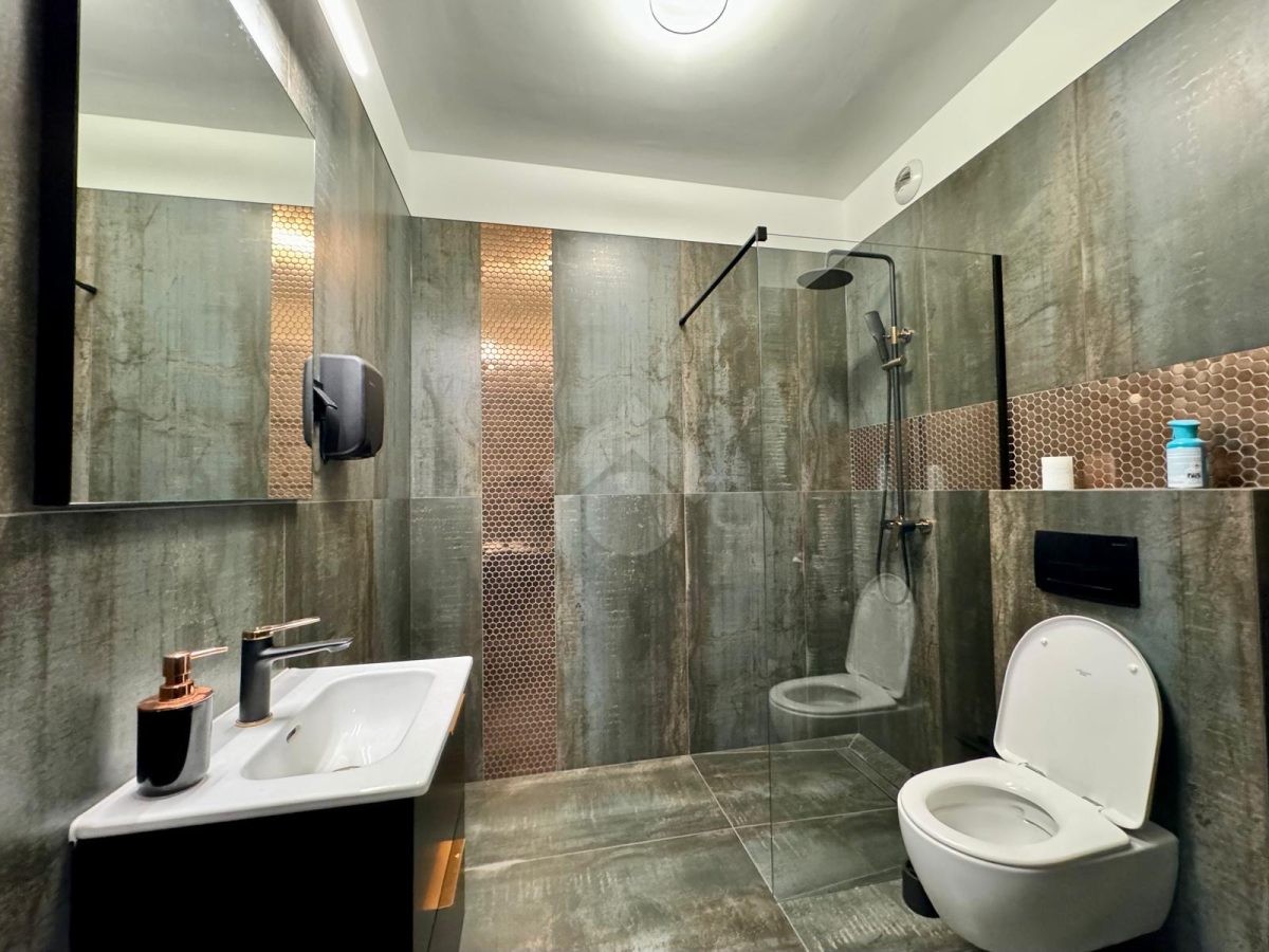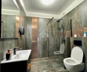 Bardzo dobry – lokal wykończony w wysokim standardzie. W części aneksu kuchennego znajduje się zabudowa kuchenna na wymiar wyposażona w niezbędne sprzęty AGD. W łazience umywalka, WC oraz prysznic. Gabinet wyposażony w pojemną szafę, krzesła, biurko oraz sofę. Kwestia umeblowania do uzgodnienia.