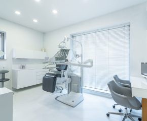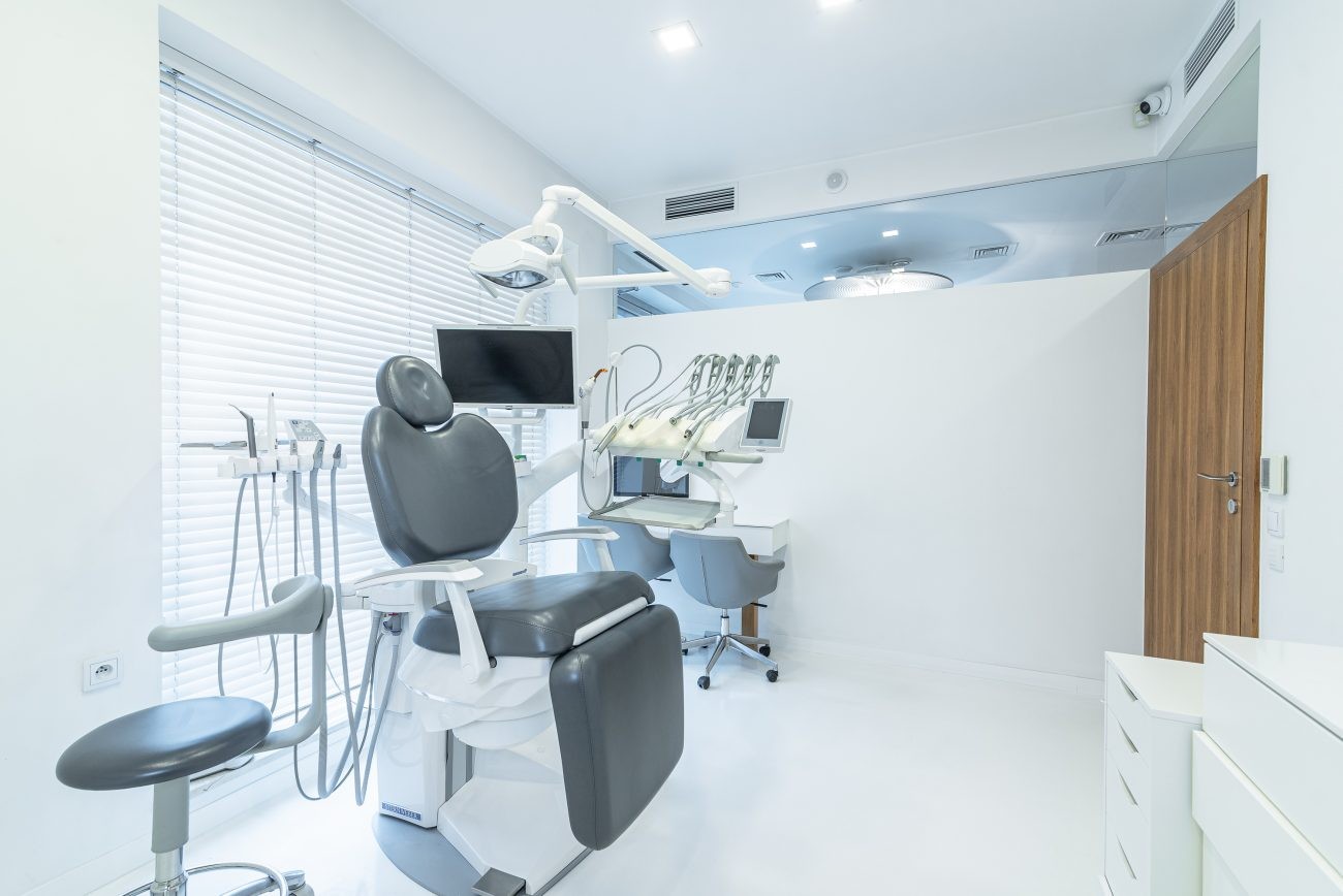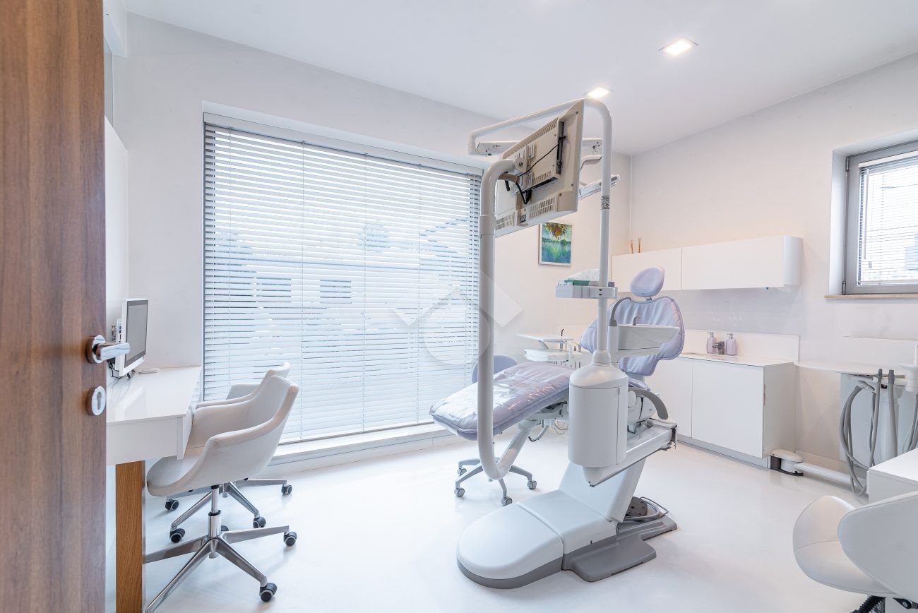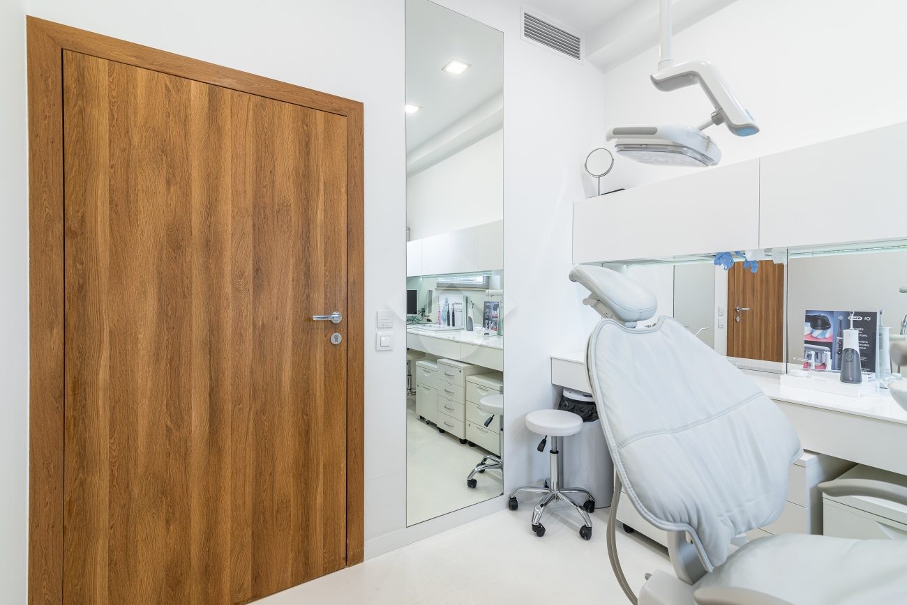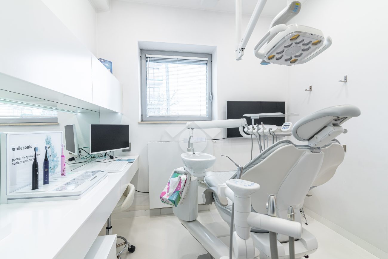 – meble stomatologiczne, blaty z konglomeratu, parapety marmurowe, w oknach rolety drewniane białe