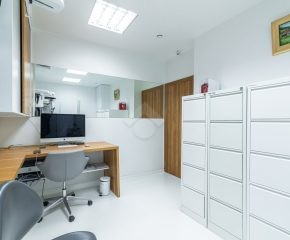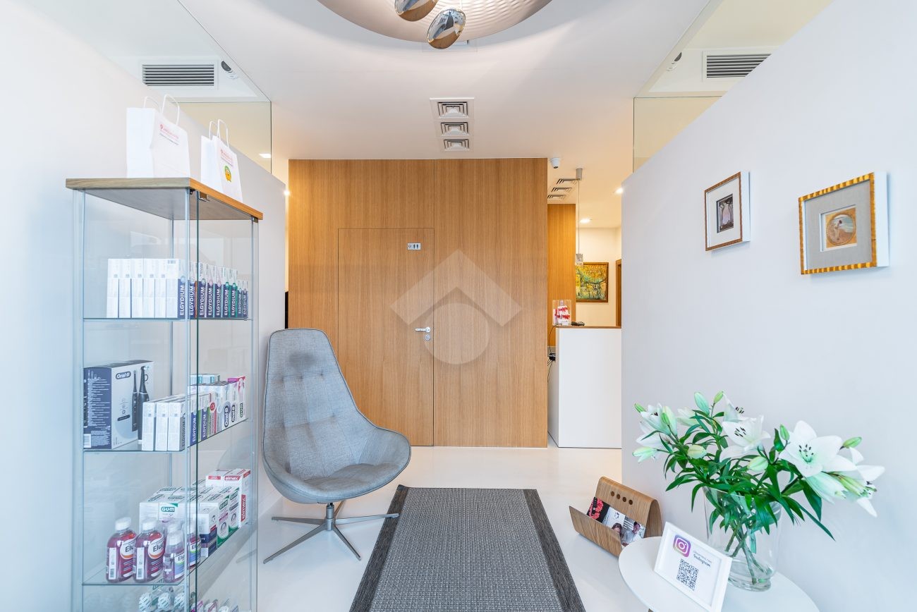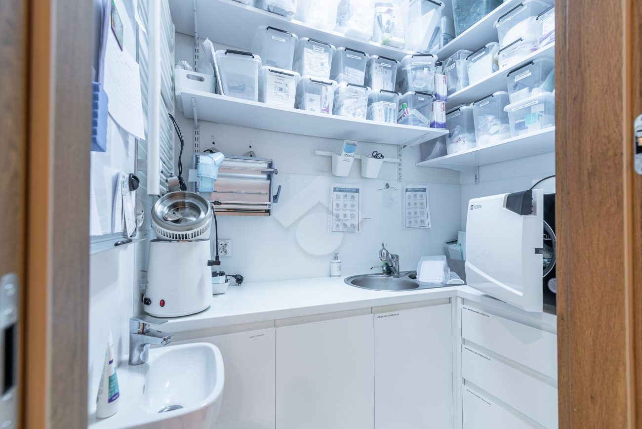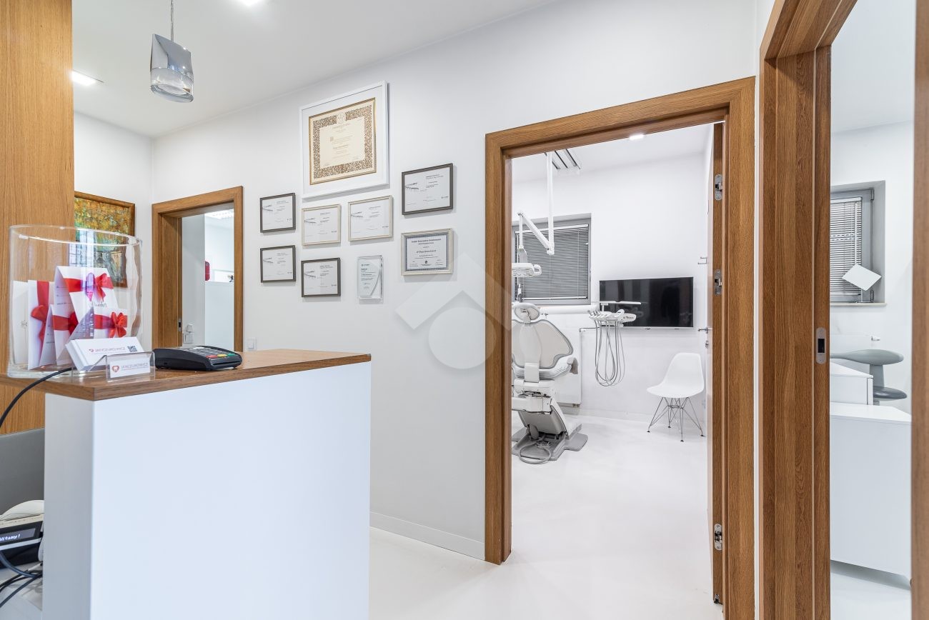 Nieruchomość składa się z trzech osobnych gabinetów o pow. 14m2, 14m2 oraz 9,2m2, gabinetu do sterylizacji, gabinetu radiologicznego, poczekalni dla dzieci, głównej poczekalni połączonej z recepcją, łazienki dla klientów, osobnego WC dla personelu, pomieszczenia przeznaczonego na środki czystości oraz pomieszczenia socjalnego.
