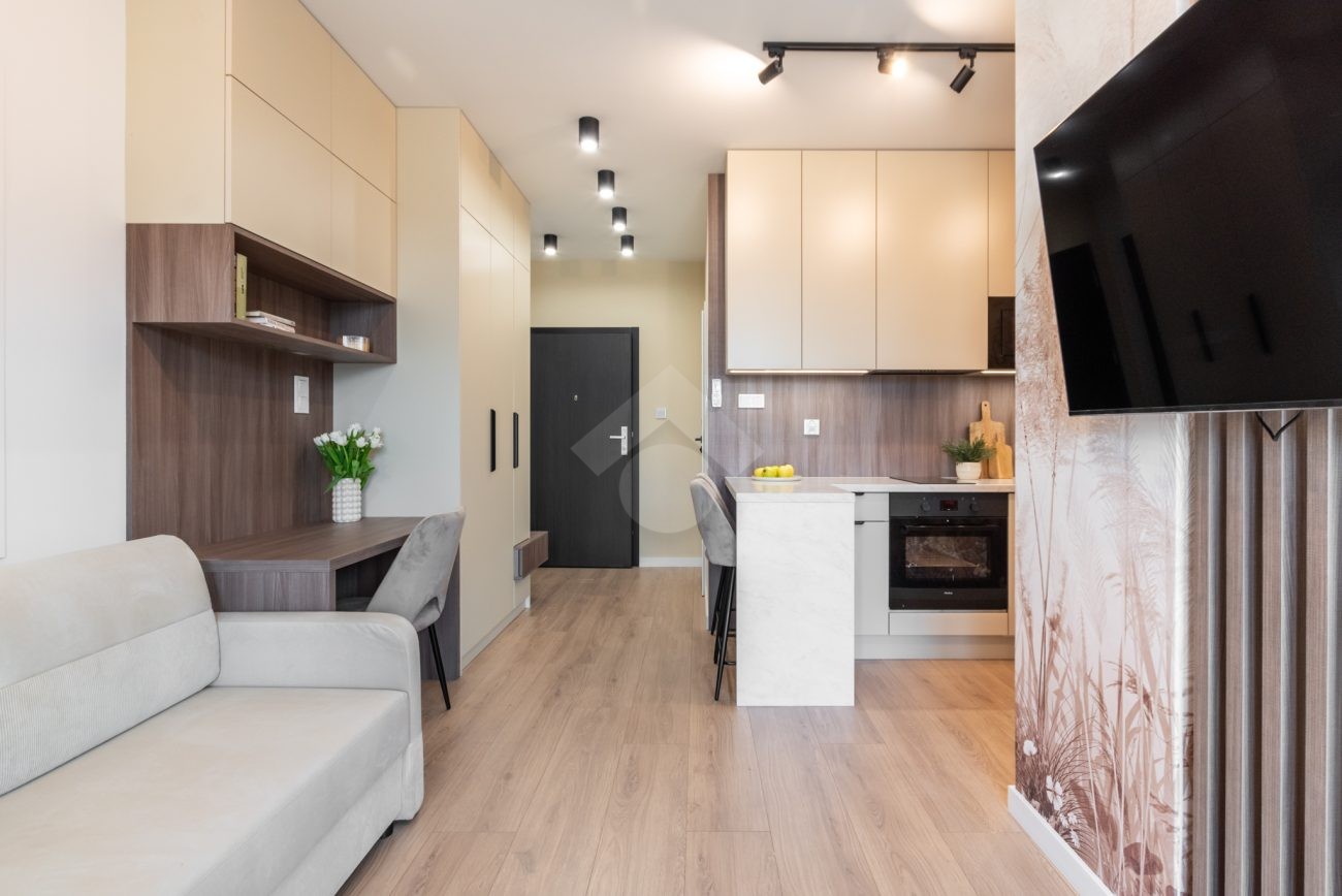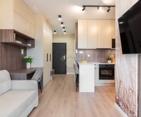 – pokoju z aneksem kuchennym i wyjściem na balkon,