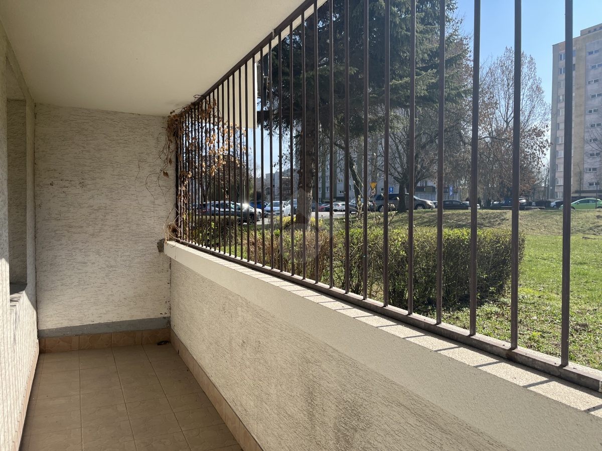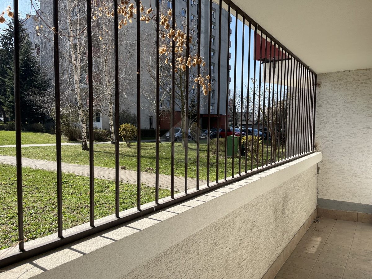 Mieszkanie jest w dobrym stanie i zostało zaprojektowane z myślą o maksymalnym wykorzystaniu dostępnej przestrzeni. Jasny pokój pełni funkcję zarówno salonu, jak i sypialni – znajduje się w nim nowa, rozkładana kanapa. Duże okna zapewniają doskonałe doświetlenie wnętrza, a z pokoju prowadzi wyjście na przestronną loggię rozciągającą się na całą szerokość mieszkania.