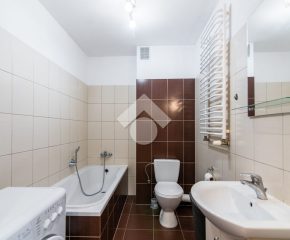 W lokalu znajdują się niezbędne sprzęty takie jak: pralka, lodówka, kuchenka z piekarnikiem, zmywarka, automatyczna suszarka i mikrofala.