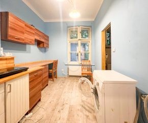 Nieruchomość: 1-pokojowe mieszkanie o powierzchni 45 m2 zlokalizowane na 1. piętrze w kamienicy. Składa się z przestronnego pokoju, oddzielnej kuchni, przedpokoju oraz łazienki z WC. Mieszkanie wyposażone w sprzęty użytku codziennego, tj. pralka, lodówka, mikrofalówka. Ogrzewanie elektryczne.
