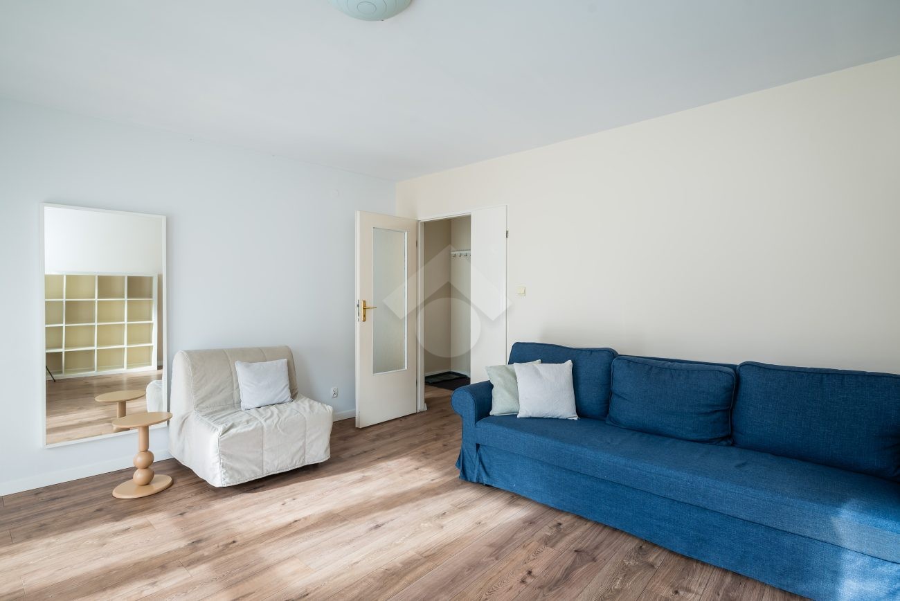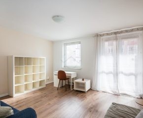 We offer a studio apartment with an area of 42 m², located on the second floor of a five-storey building. The property consists of: a large, bright living room with a balcony, a walk-in wardrobe, a separate kitchen, a hallway, and a bathroom with a toilet.
