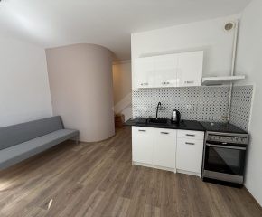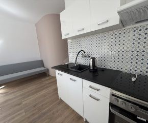 W skład lokalu wchodzi pokój dzienny z aneksem kuchennym wyposażonym m.in w mikrofalę oraz piekarnik. W części wypoczynkowej znajduje się rozkładana sofa, biurko oraz stół.