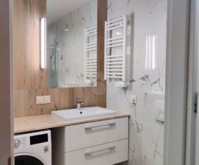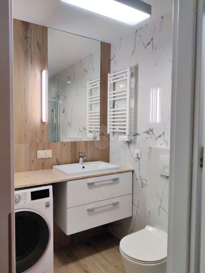 Bardzo dobry. W części aneksu kuchennego zabudowa kuchenna, wyposażona w podstawowe sprzęty AGD. W łazience znajduje się prysznic, umywalka, pralka oraz WC. Mieszkanie przeszło generalny remont w 2021 r. oraz zostały wymienione instalacje elektryczne.