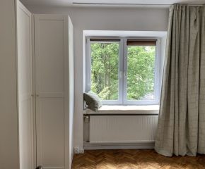 Mieszkanie składa się z jasnego pokoju z aneksem kuchennym oraz łazienki wyposażonej w prysznic, pralkę i WC. Lokal został odświeżony w 2024 roku, dzięki czemu jest gotowy do zamieszkania bez dodatkowych nakładów. Ekspozycja zachodnia – dużo popołudniowego i wieczornego światła.