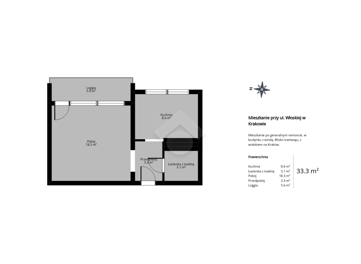 Tecnocasa prezentuje widokowe, wyremontowane 1 – pokojowe mieszkanie z osobną kuchnią i balkonem loggia. To doskonała propozycja dla osób szukających gotowego do zamieszkania lokum w dobrze skomunikowanej części Krakowa.