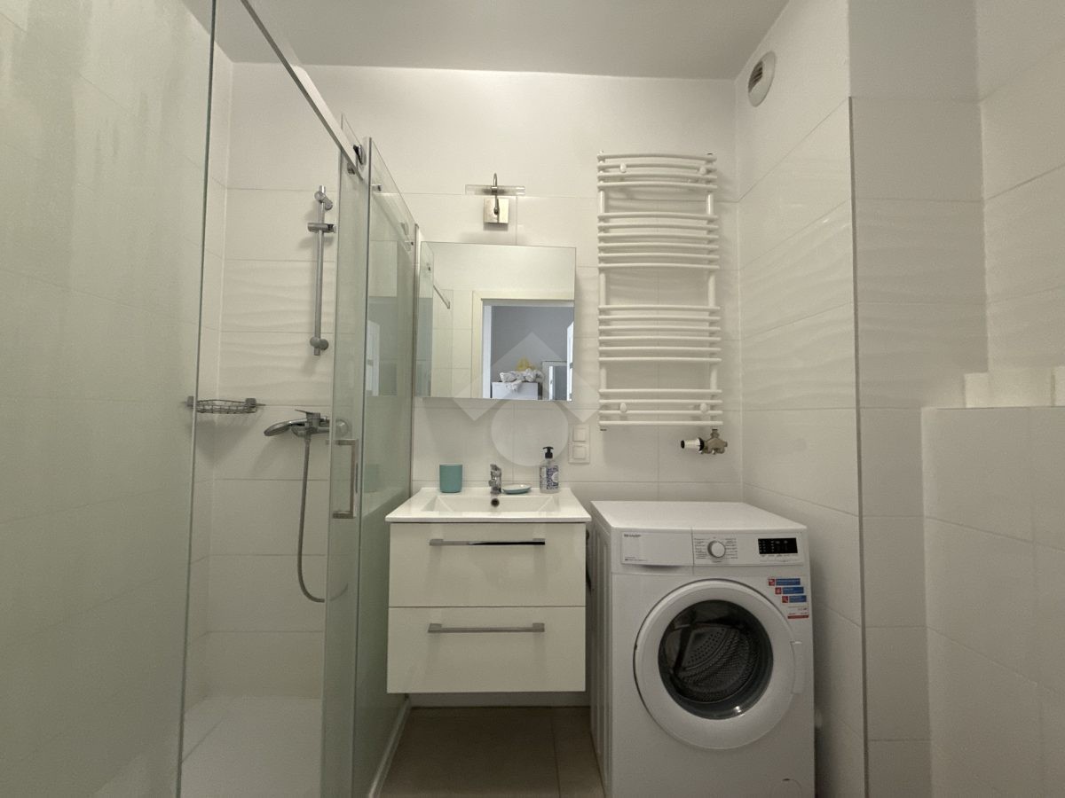 Stan nieruchomości: Bardzo dobry. Mieszkanie składa się przedpokoju, aneksu kuchennego, salonu z wyjściem na balkon oraz łazienki z WC. Nieruchomość w pełni wyposażona i dostosowana do codziennego użytku. W kuchni: lodówko-zamrażarka, piekarnik, zmywarka, płyta indukcyjna; w łazience prysznic, umywalka oraz pralka.