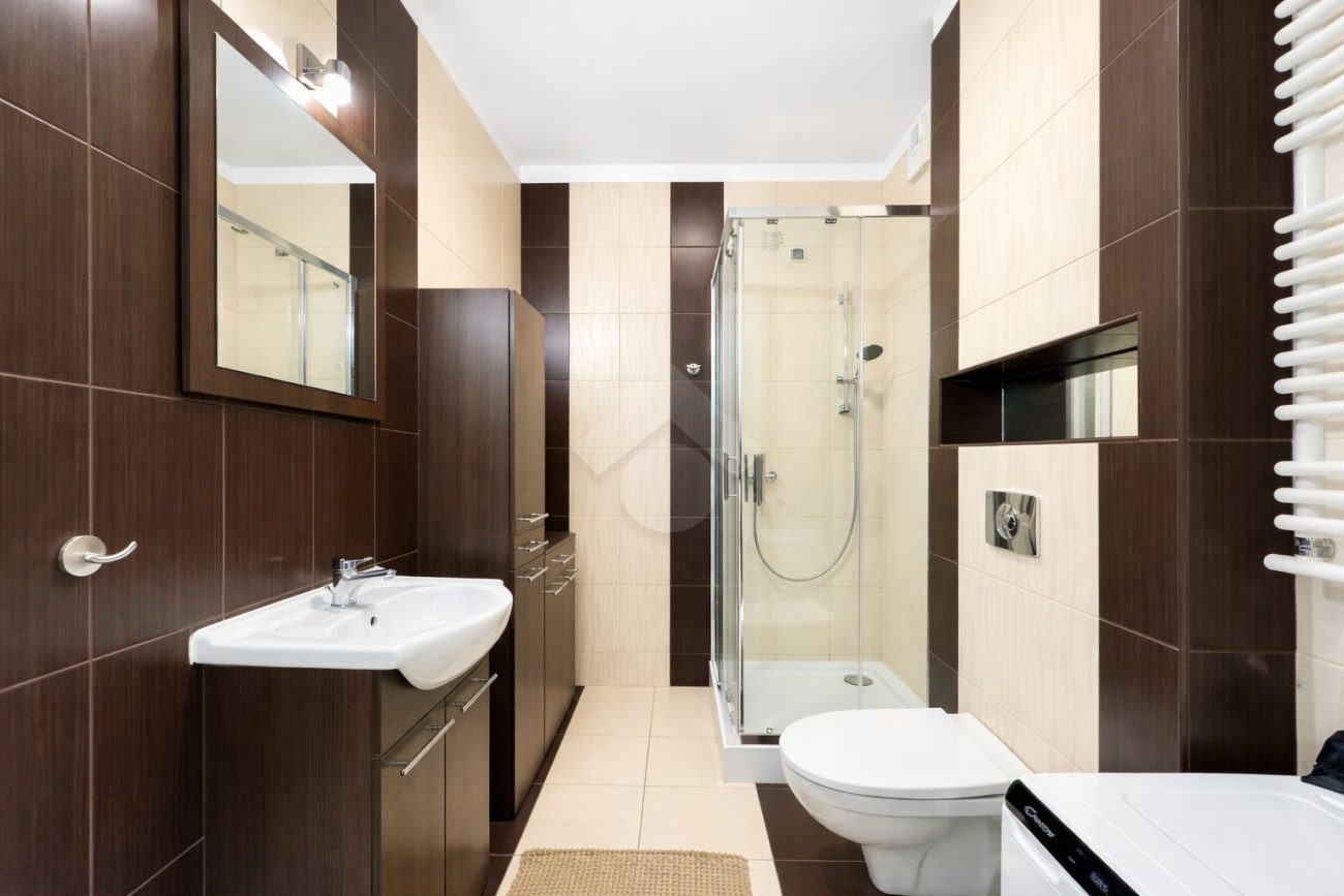Stan mieszkania: Bardzo dobry – w kuchni zabudowa kuchenna na wymiar wyposażona w podstawowe sprzęty AGD (lodówka, płyta indukcyjna, piekarnik). W łazience znajduje się prysznic, umywalka oraz WC.