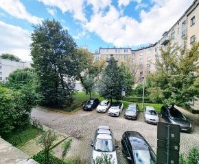 Okna wychodzą na spokojne, zielone otoczenie, co zapewnia ciszę i przyjemną atmosferę. Budynek z lat 50 (wybudowany z cegły) jest zadbany, a mieszkańcy mogą korzystać z wewnętrznego, prywatnego parkingu.