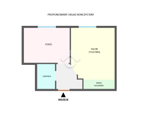 Mieszkanie aktualnie składa się z przestronnego pokoju, oddzielnej dużej kuchni z oknem, przedpokoju oraz łazienki z WC, ale doskonały układ daje szerokie możliwości aranżacyjne. Dzięki funkcjonalnemu rozkładowi można łatwo wydzielić osobną sypialnię oraz stworzyć komfortowy salon z aneksem kuchennym, dostosowując przestrzeń do własnych potrzeb.