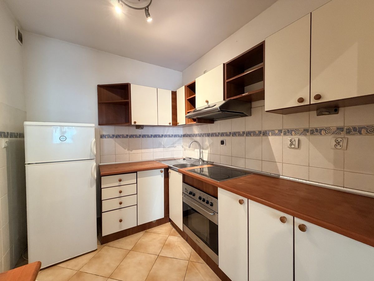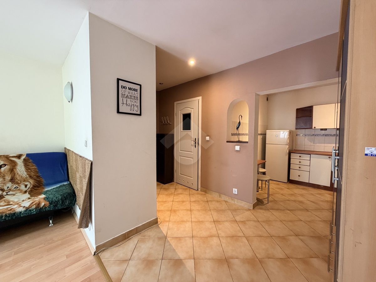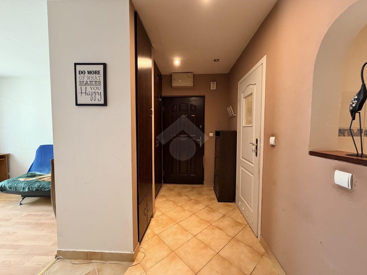 Stan nieruchomości: DO ODŚWIEŻENIA. Kuchnia wyposażona jest w lodówko-zamrażarkę, piekarnik, płytę elektryczną. W pokoju sofa z funkcją spania, stół, komoda, szafa. W łazience znajduje się wanna, umywalka oraz pralka, a w przedpokoju szafa w zabudowie. Ogrzewanie elektryczne, a ciepła woda podgrzewana za pomocą bojlera elektrycznego.