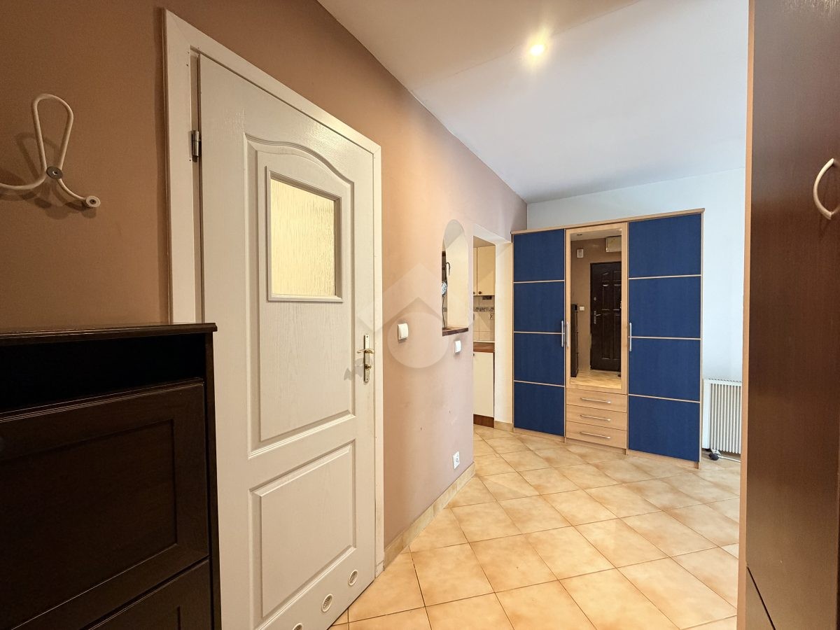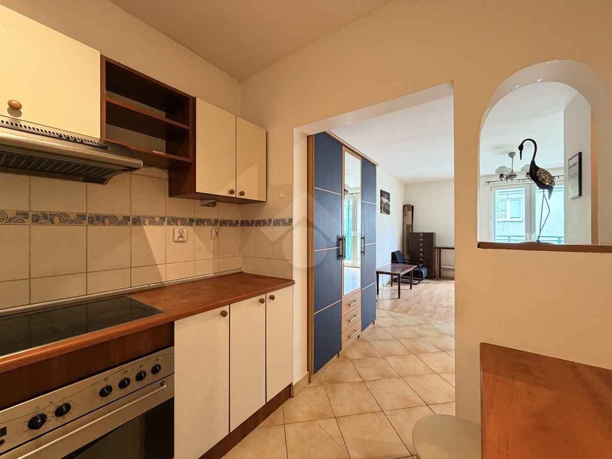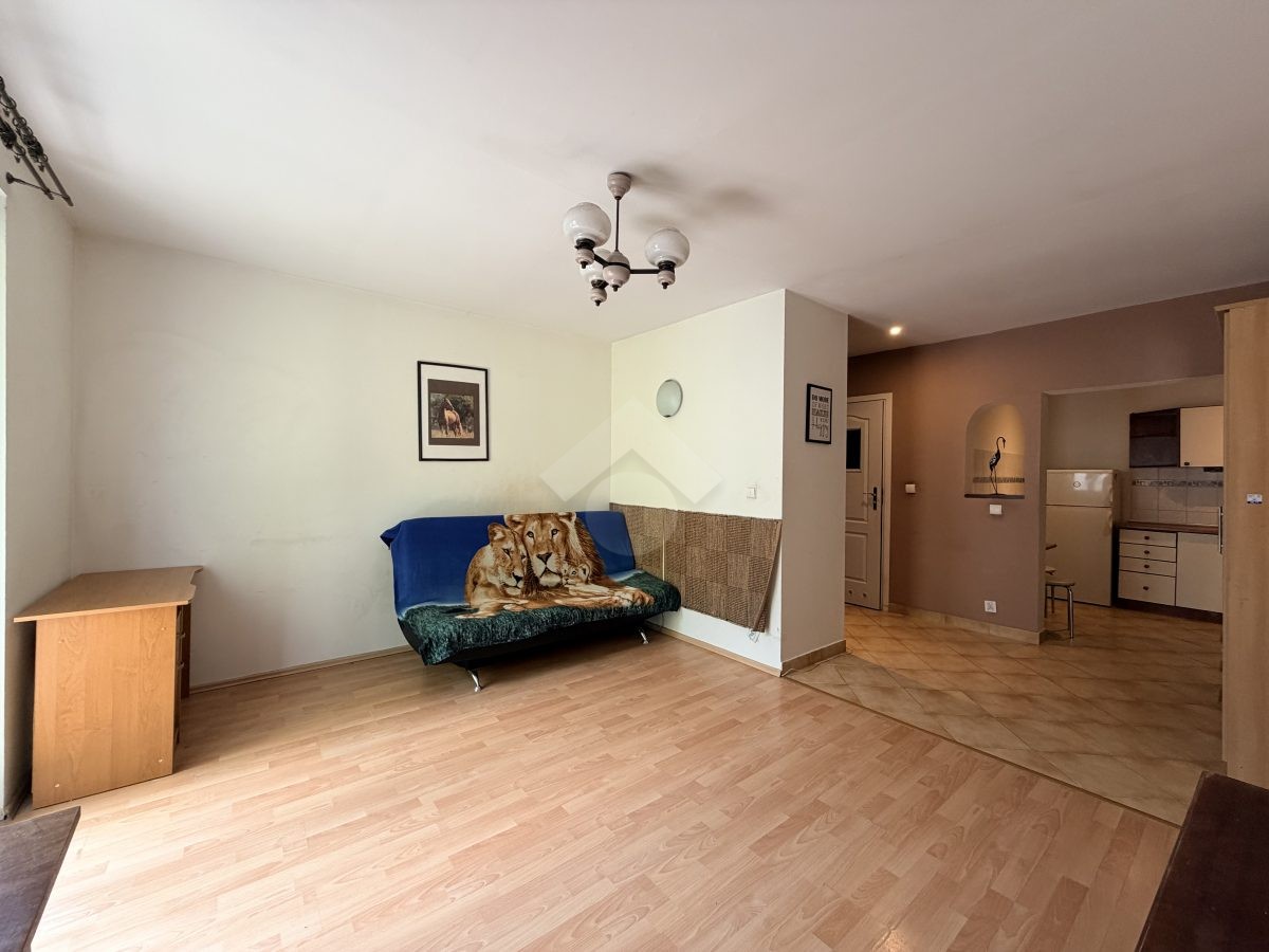 Stan nieruchomości: DO ODŚWIEŻENIA. Kuchnia wyposażona jest w lodówko-zamrażarkę, piekarnik, płytę elektryczną. W pokoju sofa z funkcją spania, stół, komoda, szafa. W łazience znajduje się wanna, umywalka oraz pralka, a w przedpokoju szafa w zabudowie. Ogrzewanie elektryczne, a ciepła woda podgrzewana za pomocą bojlera elektrycznego.