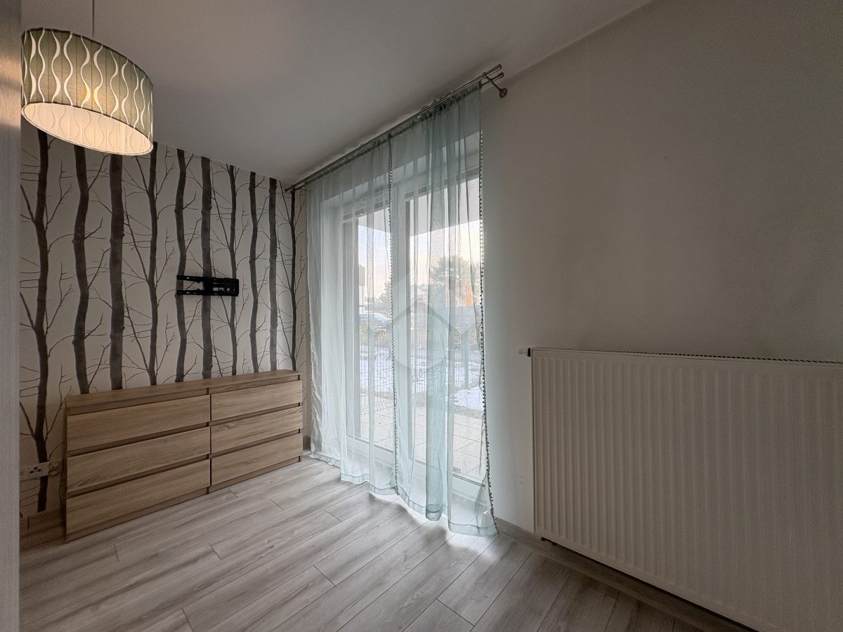 Nieruchomość: Proponujemy Państwu do wynajęcia mieszkanie o powierzchni 31,81m², znajdujące się na parterze w trzypiętrowym budynku z 2021 roku. Nieruchomość składa się z przestronnego salonu z aneksem kuchennym, z którego jest bezpośrednie wyjście na ogród, osobnej sypialni, łazienki z WC oraz przedpokoju.