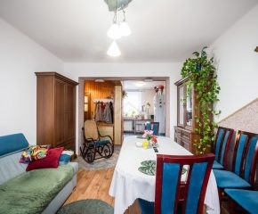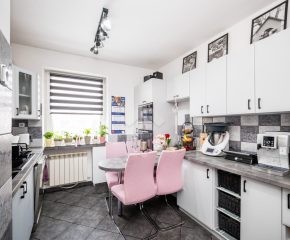 Budynek oddany do użytkowania w 1973 roku, na bieżąco remontowany i modernizowany. Powierzchnia całkowita wynosi 221,1 m², działka ma 6,96 ara. Dom wybudowany z pustaka, ocieplony styropianem (10–15 cm), dach płaski pokryty blachą, okna PCV.