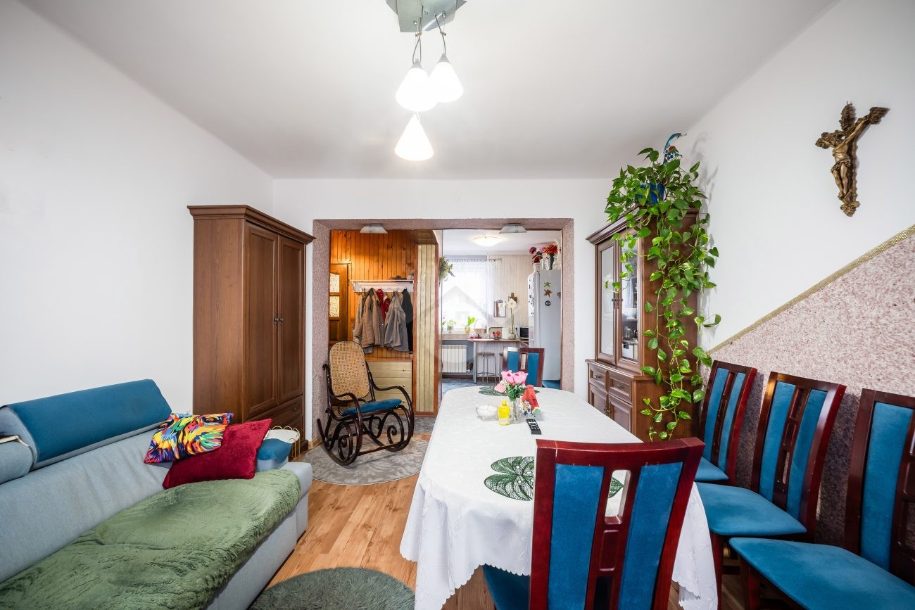 Nieruchomość składa się z trzech kondygnacji z wewnętrzną klatką schodową oraz osobnymi wejściami na każde piętro, co daje możliwość wydzielenia trzech niezależnych mieszkań.