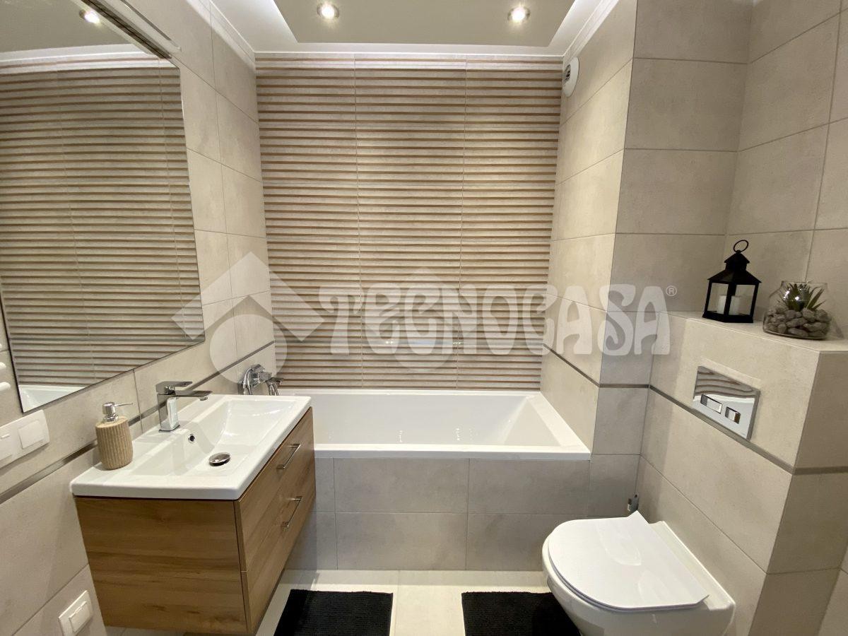 W kuchni lodówka, płyta indukcyjna i piekarnik, a w łazience wanna, umywalka, WC oraz pralka. Ogrzewanie miejskie.