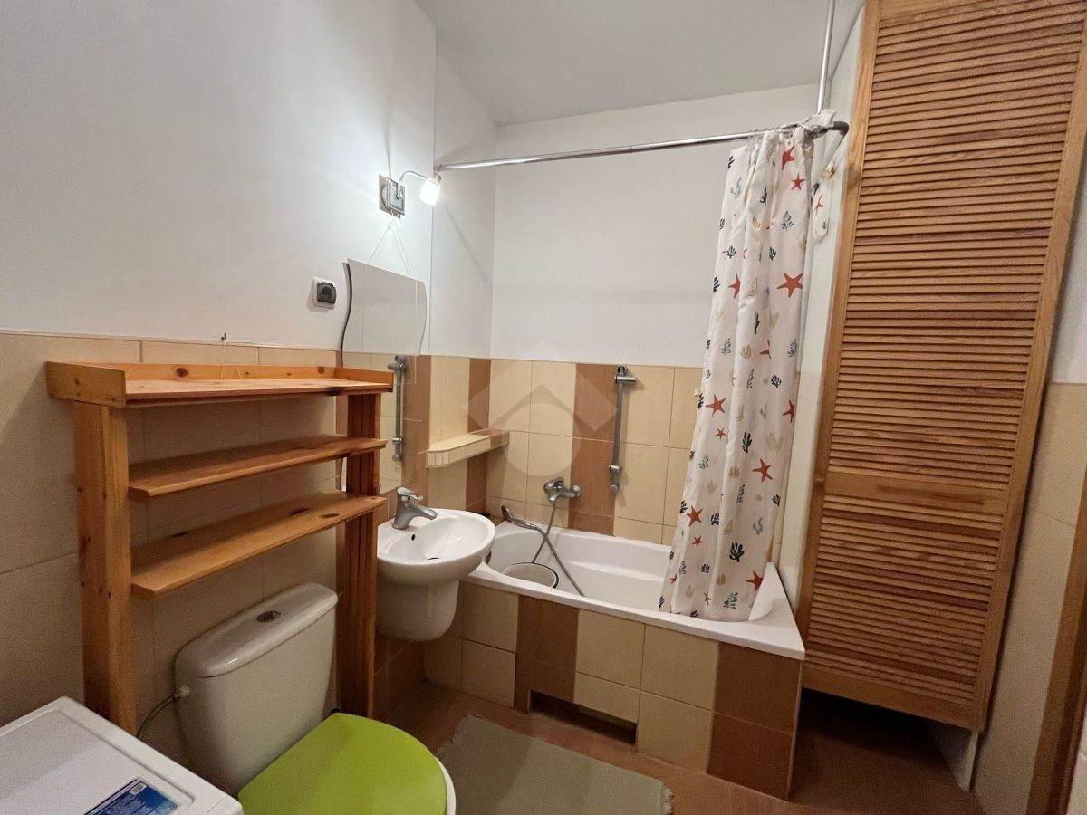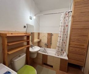 – Bathroom: bathtub with a shower, washing machine, toilet, cabinets;