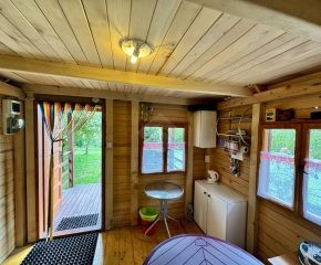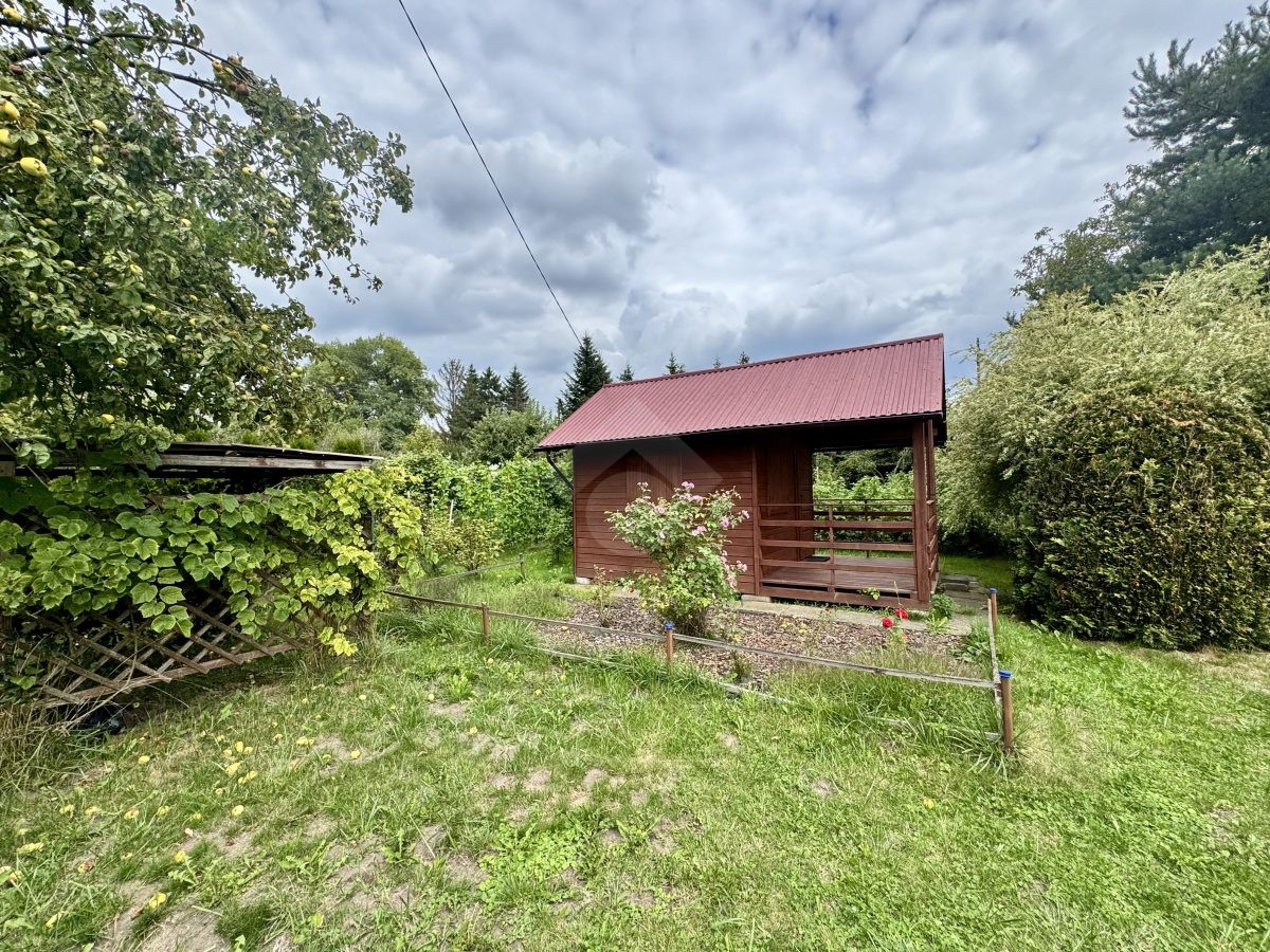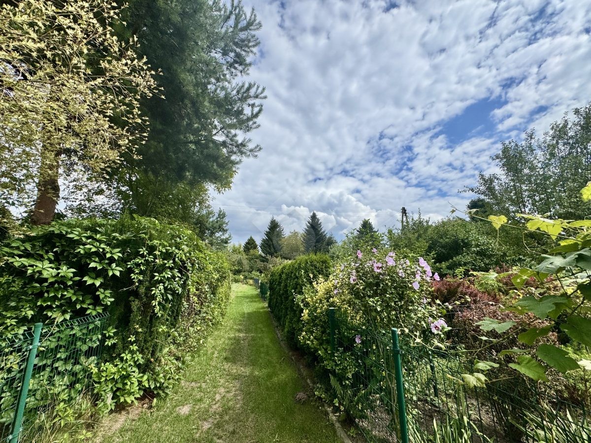 Zadbana działka ROD z domkiem, idealna do wypoczynku. Na terenie rosną liczne kwiaty i rośliny ozdobne, które tworzą przyjemny, zielony zakątek. Całość daje wrażenie spokoju i bliskości natury.