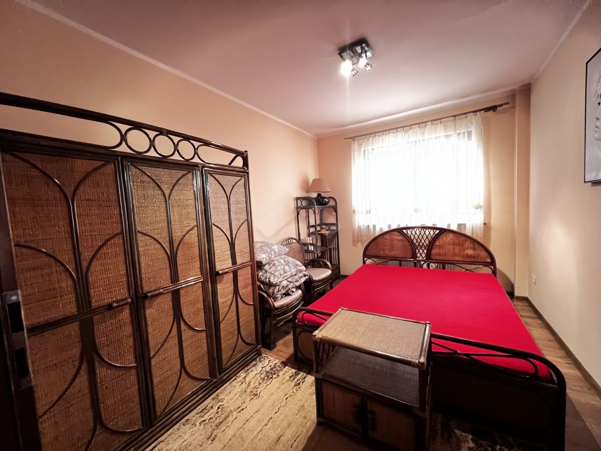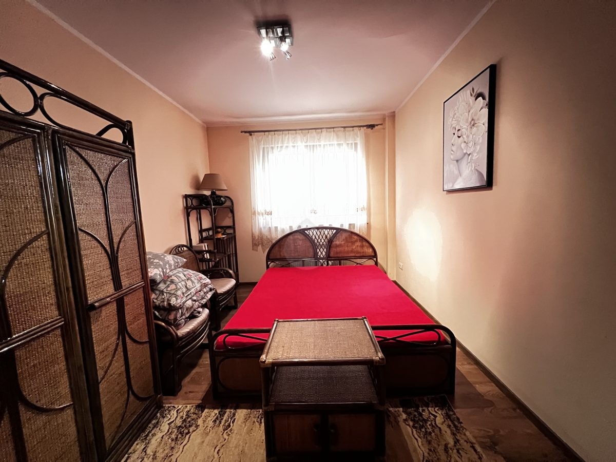 Nieruchomość w stanie dobrym. Składa się z przestronnego pokoju z otwartą kuchnią oraz jadalnią, dwóch sypialni, przedpokoju i łazienki z WC. Kuchnia została wyposażona w wysokiej jakości sprzęty użytku codziennego. W łazience znajduje się wanna, umywalka, pralka oraz WC. Ogrzewanie i ciepła woda z sieci miejskiej.