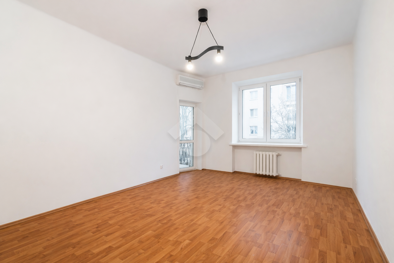 The apartment is spacious and well laid out, featuring a large living room, a separate kitchen, and two bedrooms. The property is in move-in-ready condition. The height of the rooms and the abundance of natural light provide great flexibility in arranging the interior space.